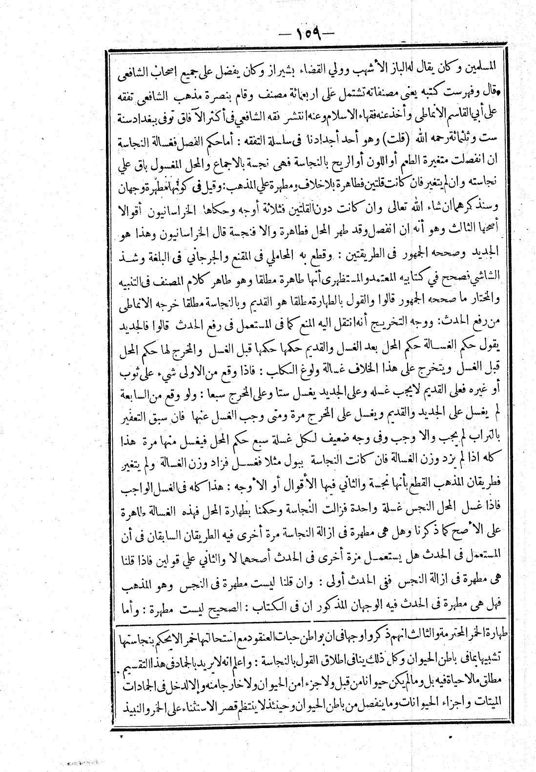 طهارة الخمر المحترمة والثالث انهم ذكروا وجها في ان بواطن حبات العنقود مع استحالتها خمر الا يحكم بنجاستها تشبيها بما في باطن الحيوان وكل ذلك ينافى اطلاق القول بالنجاسة: واعلم انه لا يريد بالجماد في هذا التقسيم.