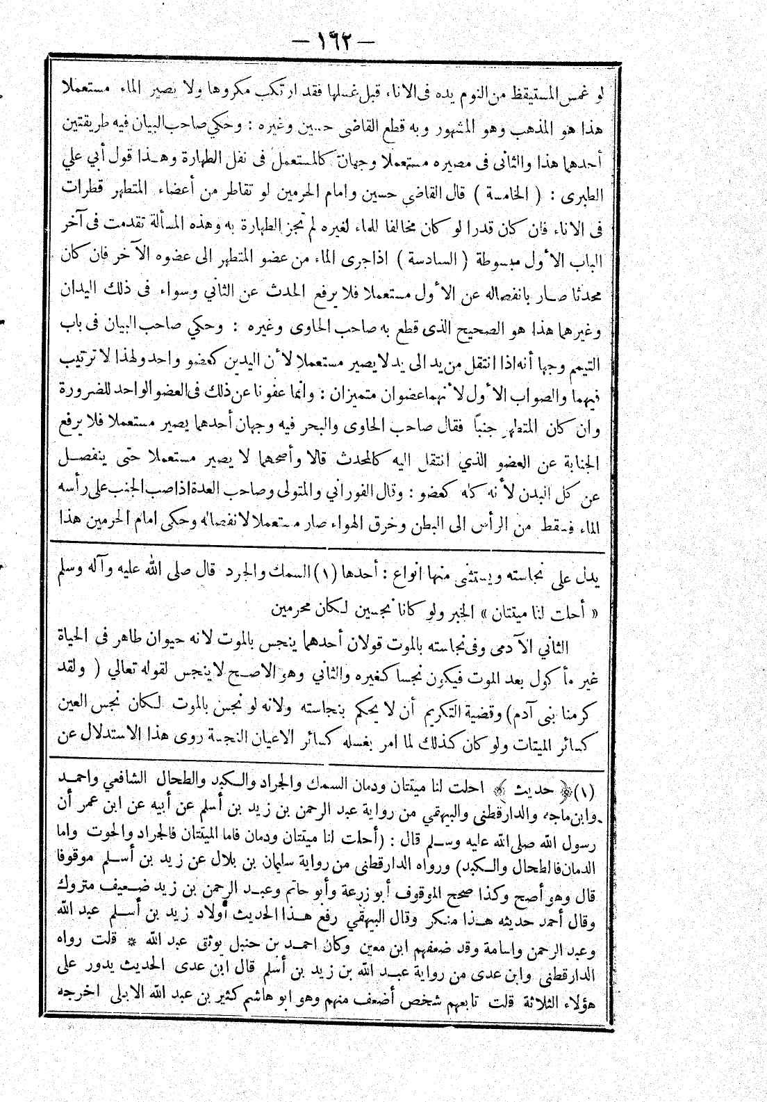 يدل على نجاسته ويستثنى منها انواع: أحدهما السمك والجرد قال صلى الله عليه وسلم أحلت لنا ميتتان الخبر ولو كانا نجسين لكان محرمين الثاني الآدمى وفي نجاسته بالموت قولان أحدهما ينجس بالموت لانه حيوان طاهر في الحياة غير مأكول بعد الموت فيكون نجسا كغيره والثاني وهو الاصح لا ينجس لقوله تعالي (ولقد كرمنا بنى آدم) وقضية التكريم أن لا يحكم بنجاسة ولانه لو نجس بالموت لكان نجس العين كسائر الميتات ولو كان كذلك لما امر بغسله كسائر الاعيان النجسة روى هذا الاستدلال عن