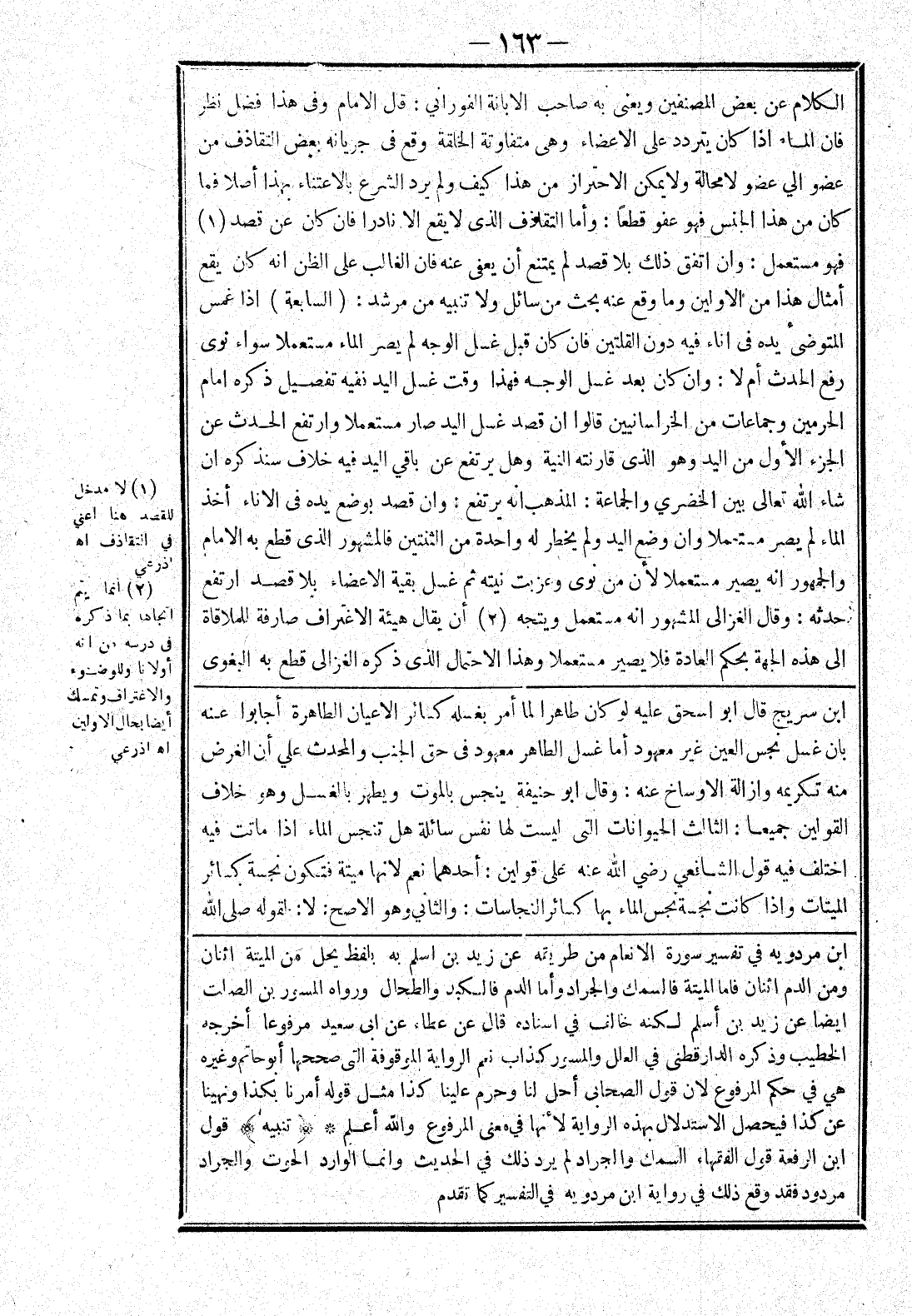 ابن سريج قال أبو اسحق عليه لو كان طاهرا لما أمر بغسله كسائر الاعيان الطاهرة أجابوا عنه بان غسل نجس العين غير معهود أما غسل الطاهر معهود في حق الجنب والمحدث علي أن الغرض منه تكريمه وازالة الاوساخ عنه: وقال أبو حنيفة ينجس بالموت ويطهر بالغسل وهو خلاف القولين جميعا: الثالث الحيوانات التى ليست لها نفس سائلة هل تنجس الماء إذا ماتت فيه اختلف فيه قول الشافعي رضي الله عنه على قولين: أحدهما نعم لا نها ميتة فتكون نجسة كسائر الميتات وإذا كانت نجسة نجس الماء بها كسائر النجاسات: والثاني وهو الاصح: لا: لقوله صلى الله