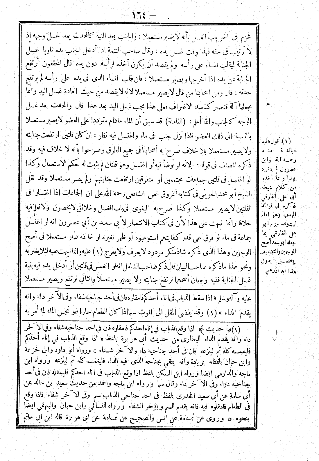عليه وسلم " إذا سقط الذباب في اناء أحدكم فامقلوه فان في أحد جناحيه شفاء وفى الآخر داء وانه يقدم الداء " وقد يفضى المقل إلى الموت سيما إذا كان الطعام حارا فلو نجس الماء لما أمر به