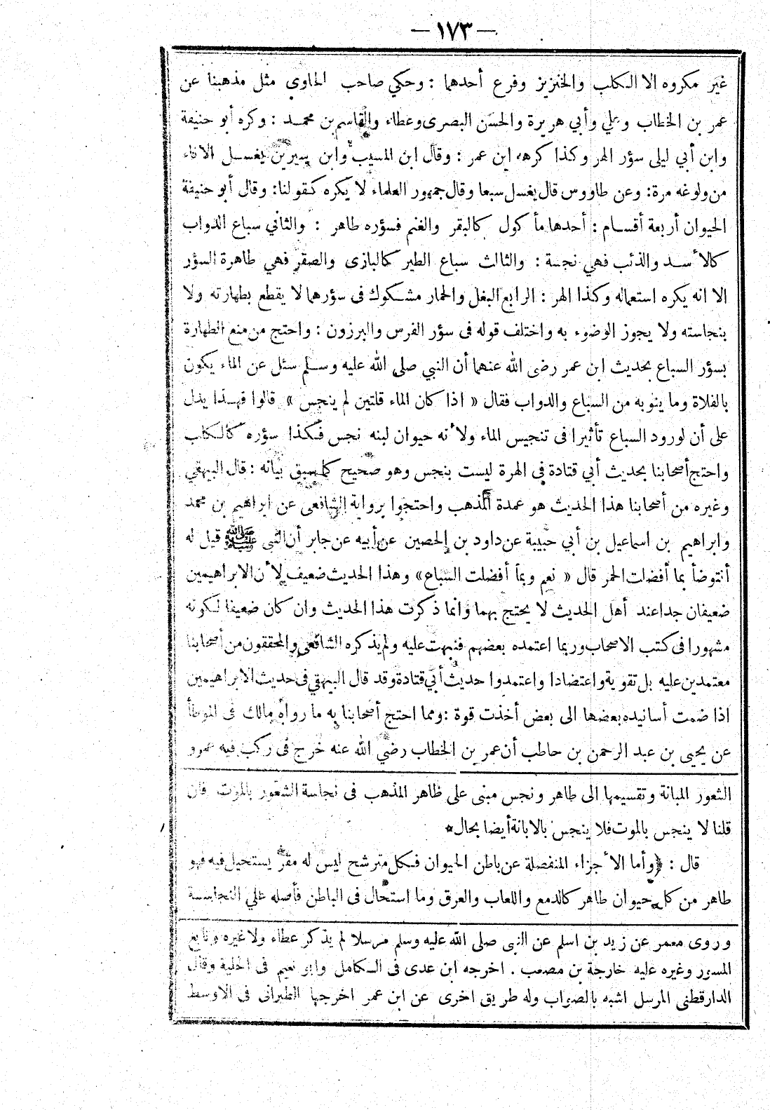 الشعور المبانة وتقسيمها إلى طاهر ونجس مبنى على ظاهر المذهب في نجاسة الشعور بالموت فان قلنا لا ينجس بالموت فلا ينجس بالابانة أيضا بحال * قال: (وأما الاجزاء المنفصلة عن باطن الحيوان فكل مترشح ليس له مقر يستحيل فيه فهو طاهر من كل حيوان طاهر كالدمع واللعاب والعرق وما استحال في الباطن فأصله علي النجاسة