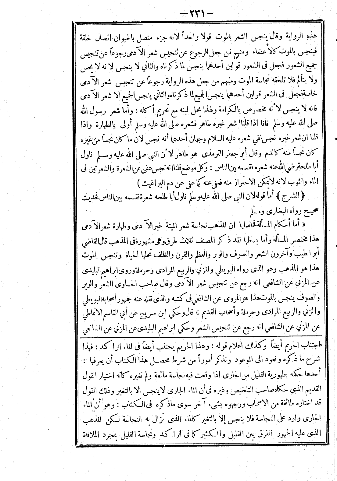 اجتناب الحريم أيضا وكذلك اعلام قوله: وهذا الحريم يجتنب أيضا في الماء الراكد: فهذا شرح ما ذكره ونعود إلى الموعود ونذكر أمورا من شرط محصل هذا الكتاب أن يعرفها: أحدها حكمه بطهورية القليل من الجارى إذا وقعت فيه نجاسة مائعة ولم تغيره كانه اختيار القول القديم الذى حكاه صاحب التلخيص وغيره في أن الماء الجارى لا ينجس الا بالتغير وذلك القول قد اختاره طائفة من الاصحاب ووجهوه بشئ آخر سوى ما ذكره في الكتاب: وهو أن الماء الجارى وارد على النجاسة فلا ينجس إلا بالتغير كالماء الذى تزال به النجاسة لكن المذهب