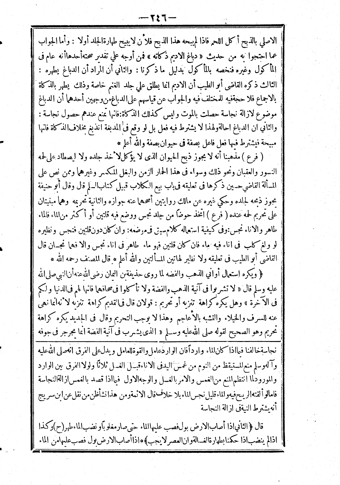 فاما لو ألقته الريح فيه والماء قليل نجس الماء بلا خلاف قال الائمة ومن هذا نشأظن من نقل عن ابن سريج أنه يشترط النية في ازالة النجاسة قال (الثاني إذا أصاب الارض بول فصب عليها الماء حتى صار مغلوبا ونضب الماء طهر (ح) وكذا إذا لم ينضب إذا حكمنا بطهارة الغسالة وان العصر لا يجب) * إذا أصاب الارض بول فصب عليها من الماء