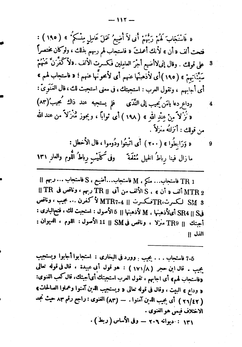 (1) فاستجاب ... يجيب: وورد فى البخاري: استجابوا أجابوا ويستجيب يجيب قال ابن حجر (8/ 171) : هو قول أبى عبيدة، قال فى قوله تعالى «فَاسْتَجابَ لَهُمْ» أي أجابهم، تقول العرب استجبتك أي أجبتك، قال كعب الغنوي: