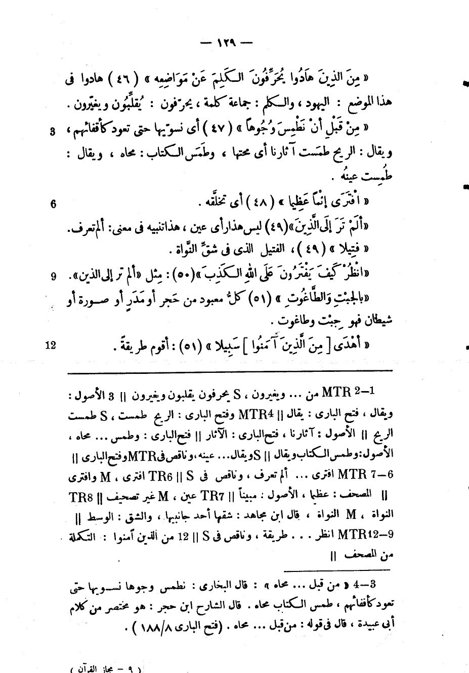 (1) «من قبل ... محاه» : قال البخاري: نطمس وجوها نسويها حتى تعود كأقفائهم، طمس الكتاب محاه. قال الشارح ابن حجر: هو مختصر من كلام أبى عبيدة، قال فى قوله: من قبل ... محاه. (فتح الباري 8/ 188) .
