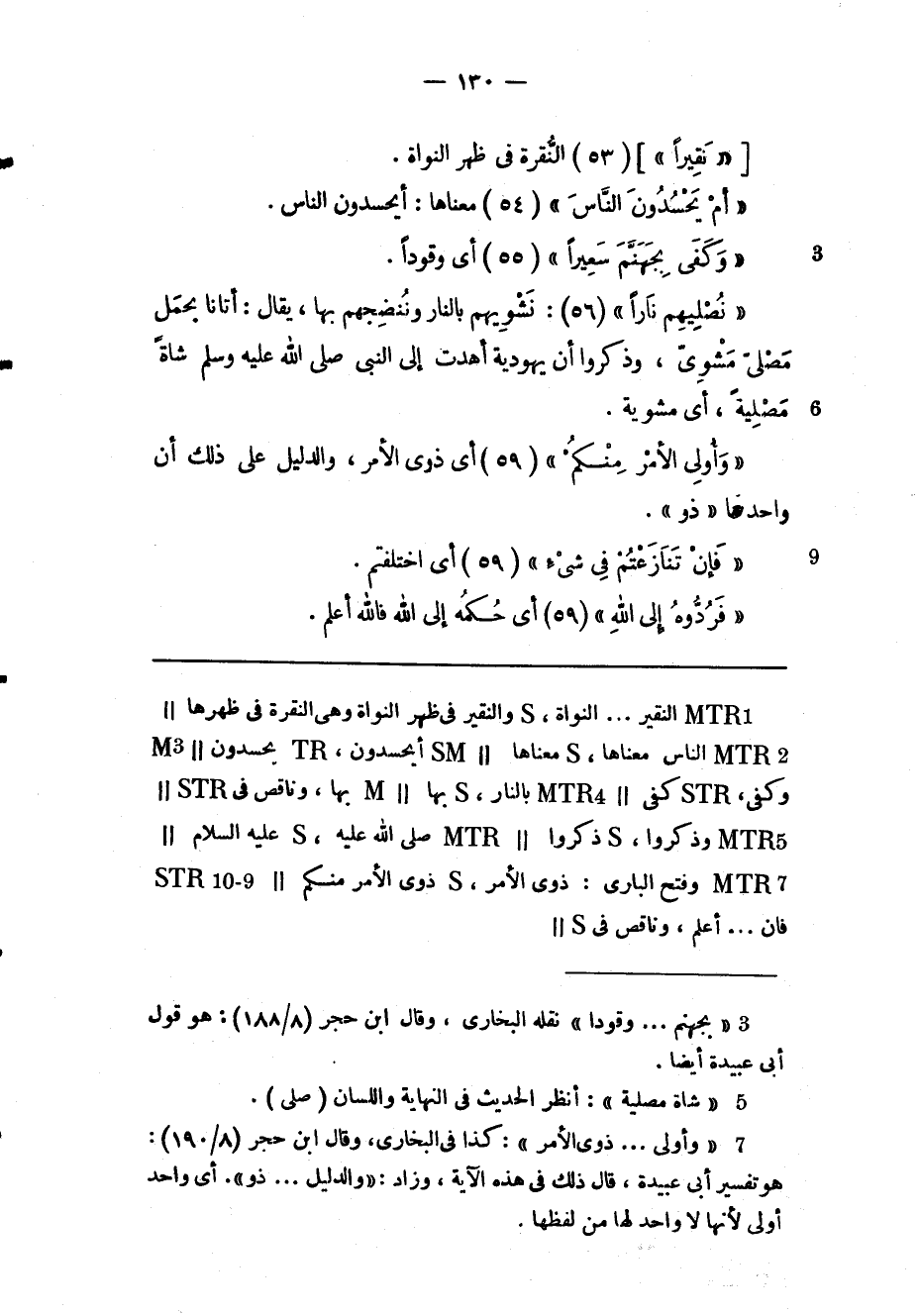 (3) «وأولى ... ذوى الأمر» : كذا فى البخاري، وقال ابن حجر (8/ 190) :