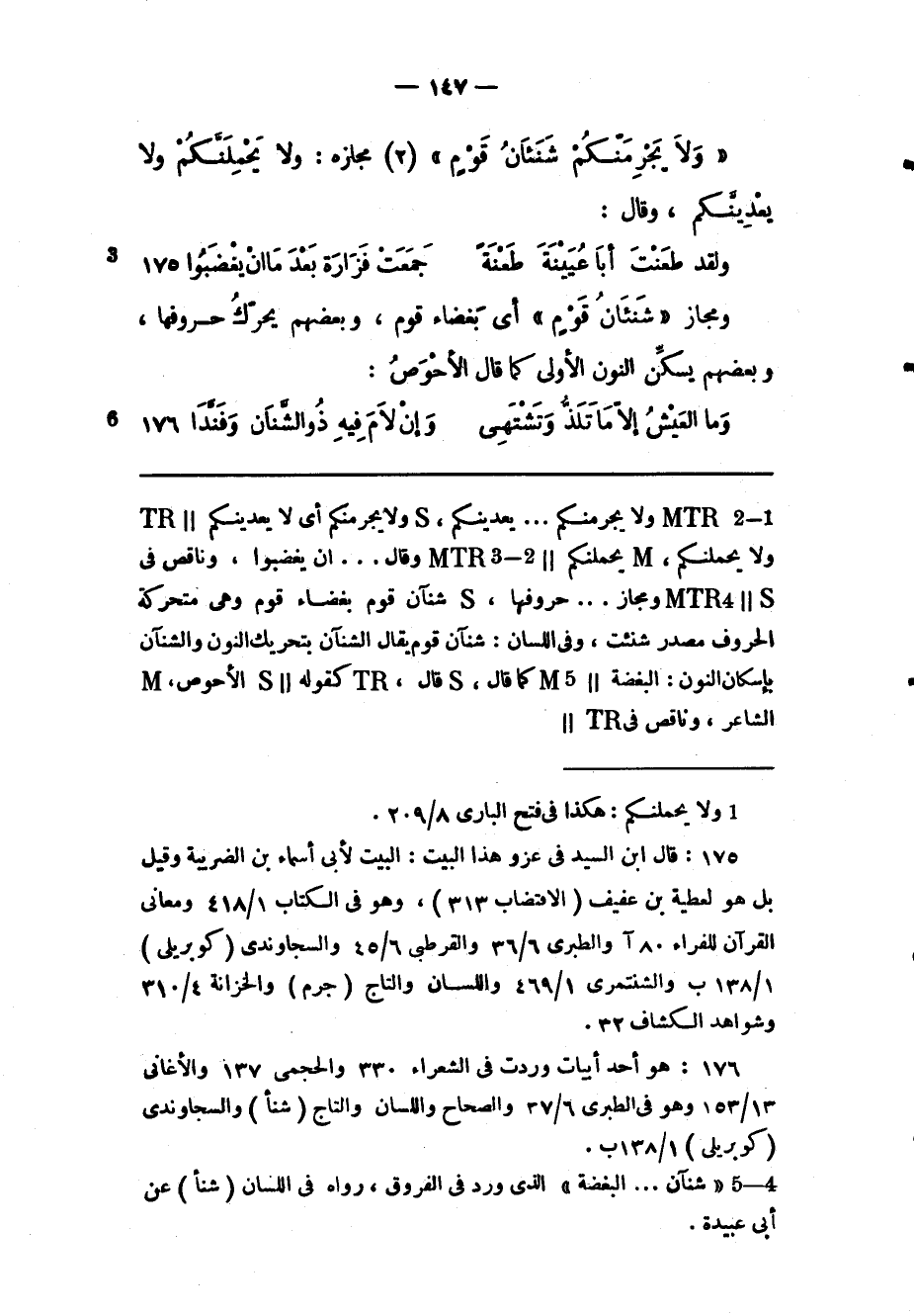 (4) : هو أحد أبيات وردت فى الشعراء 330 والحجمى 137 والأغانى 13/ 153 وهو فى الطبري 6/ 37 والصحاح واللسان والتاج (شنأ) والسجاوندى (كوبريلى) 1/ 138 ب.