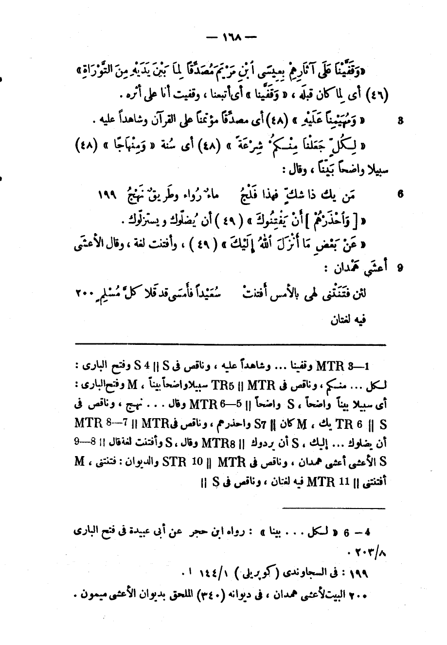 «وَقَفَّيْنا عَلى آثارِهِمْ بِعِيسَى ابْنِ مَرْيَمَ مُصَدِّقاً لِما بَيْنَ يَدَيْهِ مِنَ التَّوْراةِ» (46) أي لما كان قبله، «وقفّينا» أي أتبعنا، وقفيت أنا على أثره.