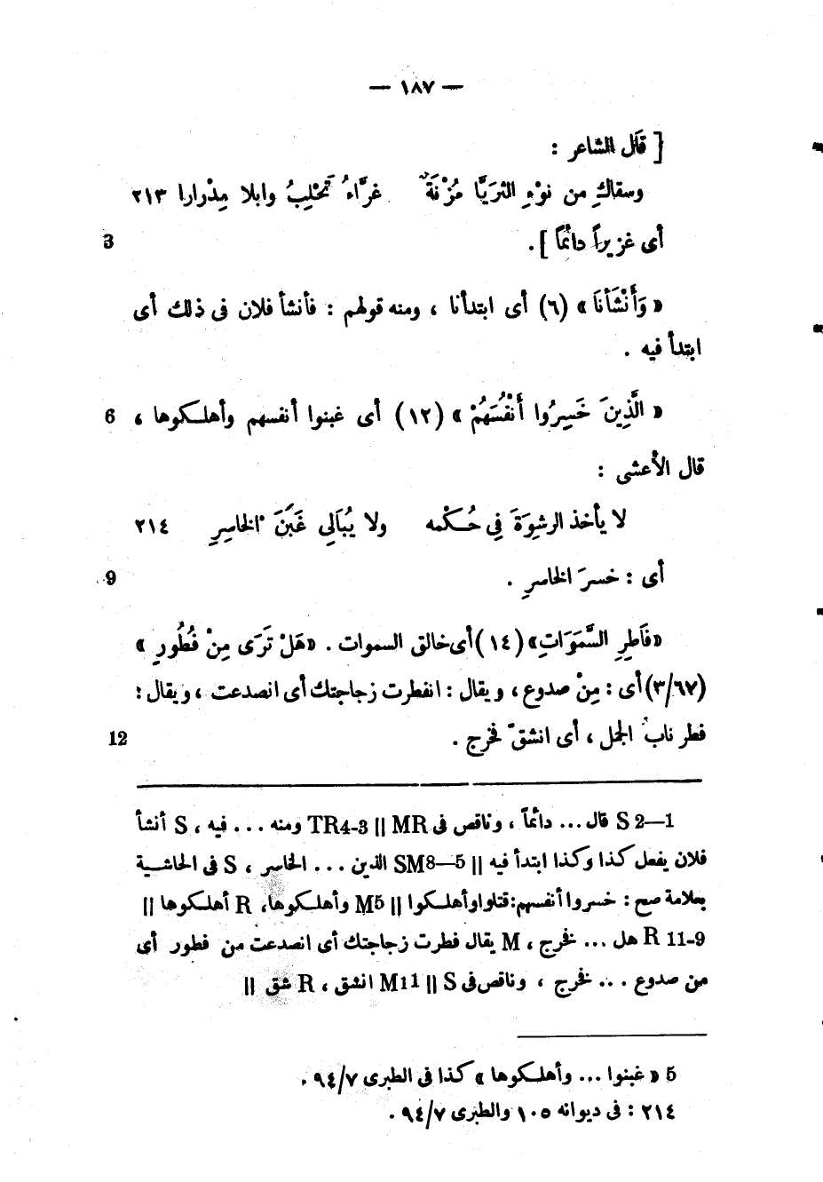 «وَأَنْشَأْنا» (6) أي ابتدأنا، ومنه قولهم: فأنشأ فلان فى ذلك أي ابتدأ فيه.