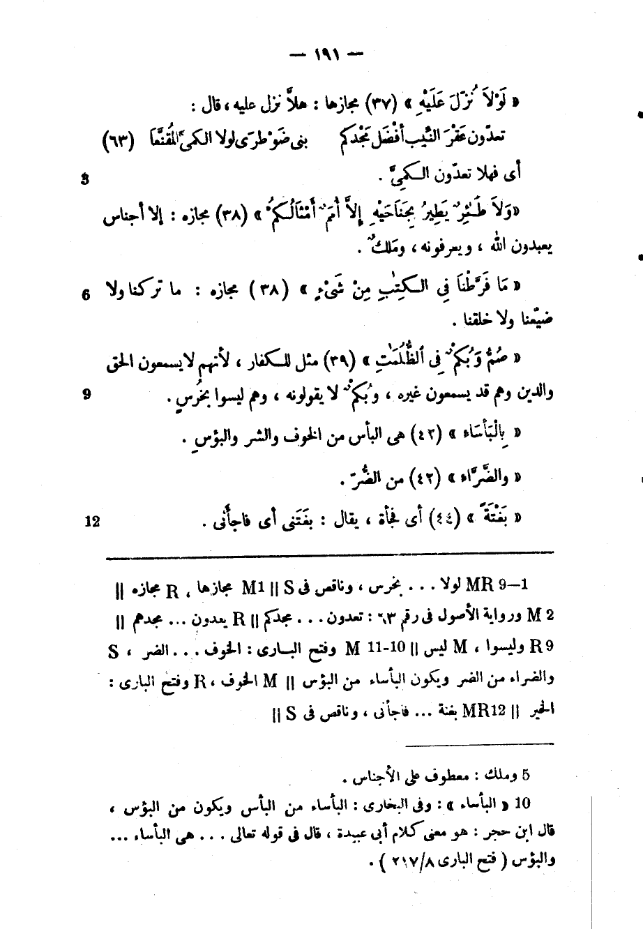 (2) «البأساء» : وفى البخاري: البأساء من البأس ويكون من البؤس، قال ابن حجر: هو معنى كلام أبى عبيدة، قال فى قوله تعالى ... هى البأساء ...