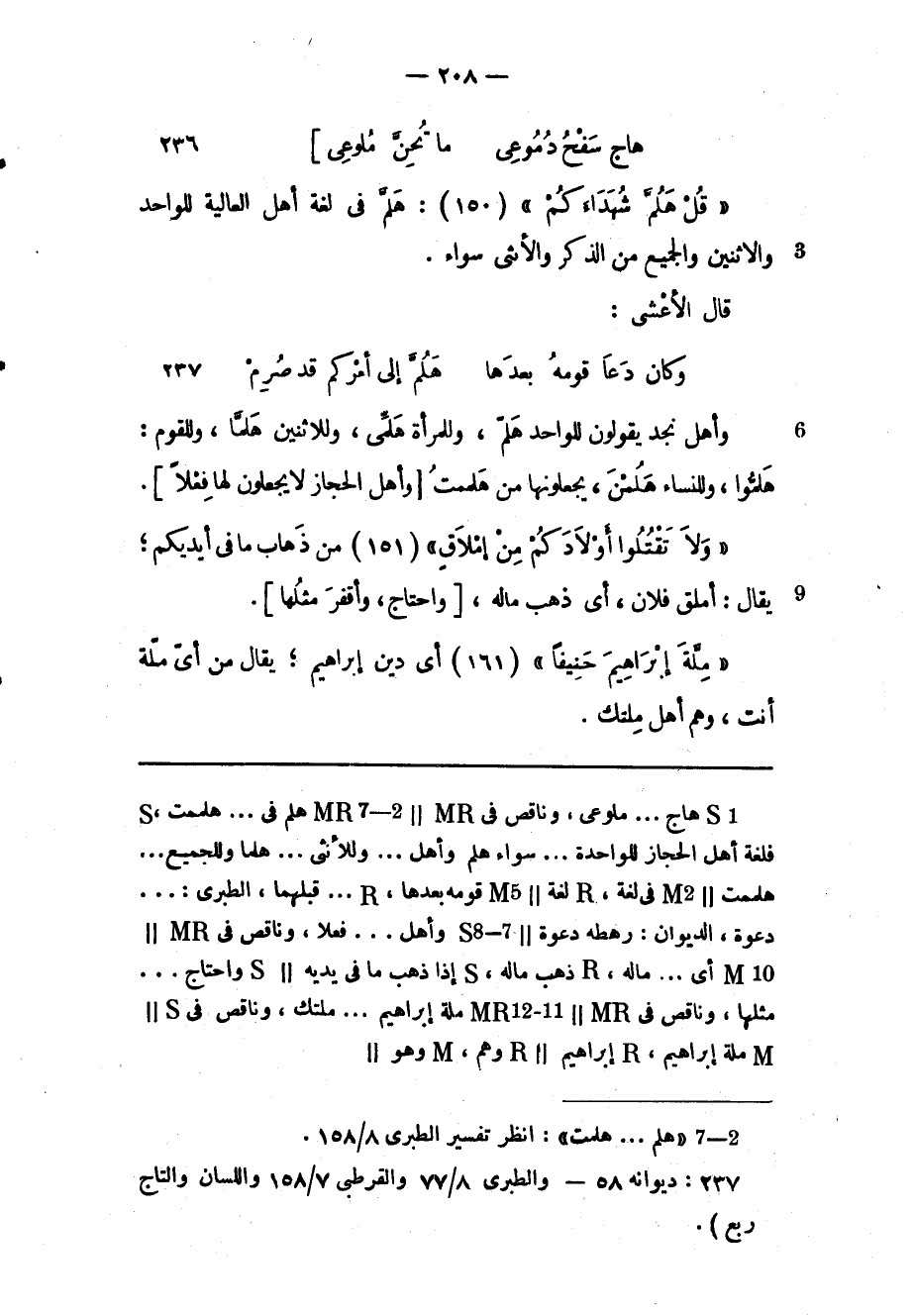 (2) «هلم ... هلمت» : انظر تفسير الطبري 8/ 158.