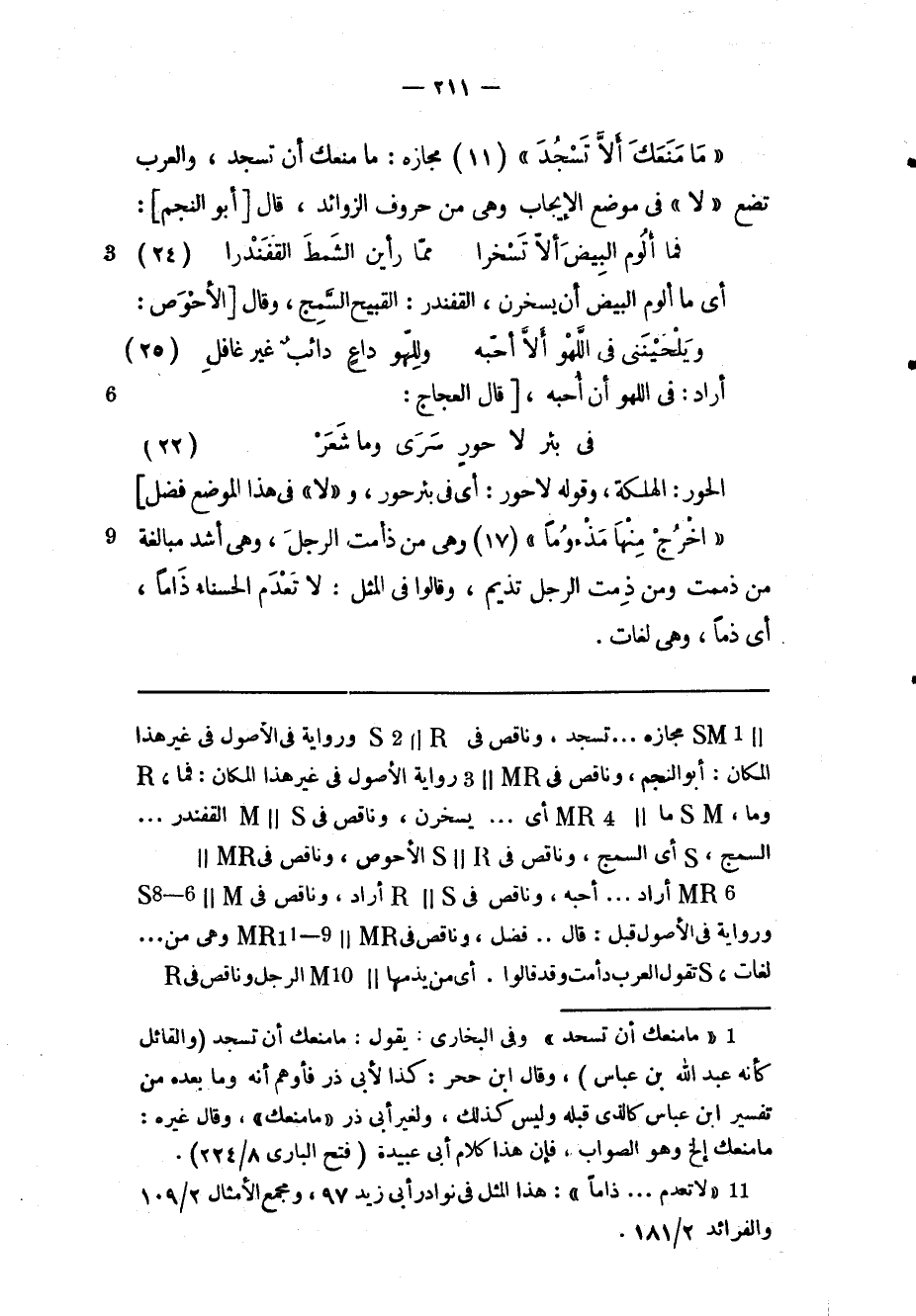 (1) «ما منعك أن تسجد» وفى البخاري: يقول: ما منعك أن تسجد (والقائل كأنه عبد الله بن عباس) ، وقال ابن حجر: كذا لأبى ذر فأوهم أنه وما بعده من تفسير ابن عباس كالذى قبله وليس كذلك، ولغير أبى ذر «ما منعك» ، وقال غيره: