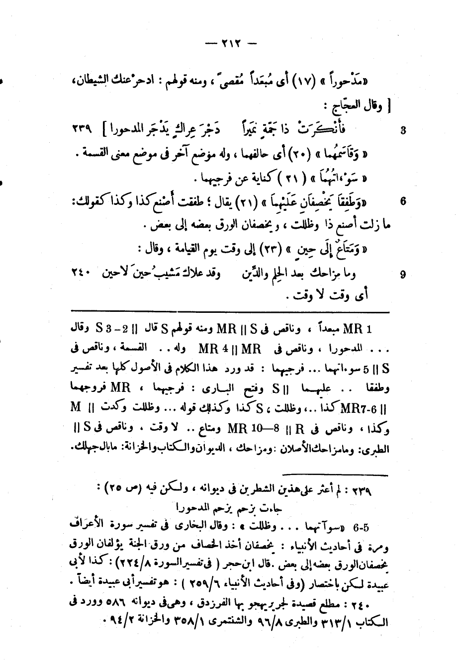 (2) «سوآتهما ... وظللت» : وقال البخاري فى تفسير سورة الأعراف ومرة فى أحاديث الأنبياء: يخصفان أخذ الخصاف من ورق الجنة يؤلفان الورق يخصفان الورق بعضه إلى بعض. قال ابن حجر (فى تفسير السورة 8/ 224) : كذا لأبى عبيدة لكن باختصار (وفى أحاديث الأنبياء 6/ 259) : هو تفسير أبى عبيدة أيضا.