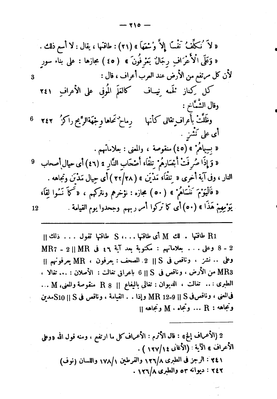 (1) «الأعراف إلخ» : قال الأثرم: الأعراف كل ما ارتفع، ومنه قول الله «وَعَلَى الْأَعْرافِ» الآية: (الأغانى 14/ 127) .
