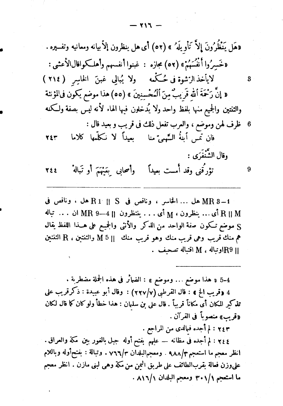(2) «قريب إلخ» : قال القرطبي (7/ 227) : وقال أبو عبيدة: ذكر قريب على تذكير المكان أي مكانا قريبا. قال على بن سليمان: هذا خطأ ولو كان كما قال لكان «قريب» منصوبا فى القرآن.