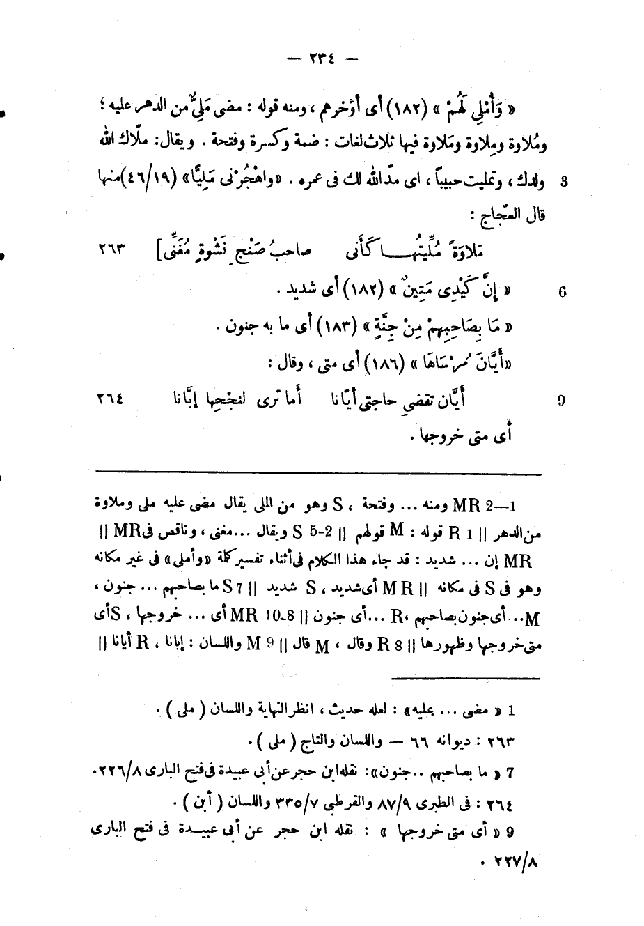 «وَأُمْلِي لَهُمْ» (182) أي أؤخرهم، ومنه قوله: مضى ملىّ من الدهر عليه «1» وملاوة وملاوة وملاوة فيها ثلاث لغات: ضمة وكسرة وفتحة. ويقال: ملّاك الله ولدك، وتمليت حبيبا، اى مدّ الله لك فى عمره. «وَاهْجُرْنِي مَلِيًّا» (19/ 46) منها قال العجّاج: