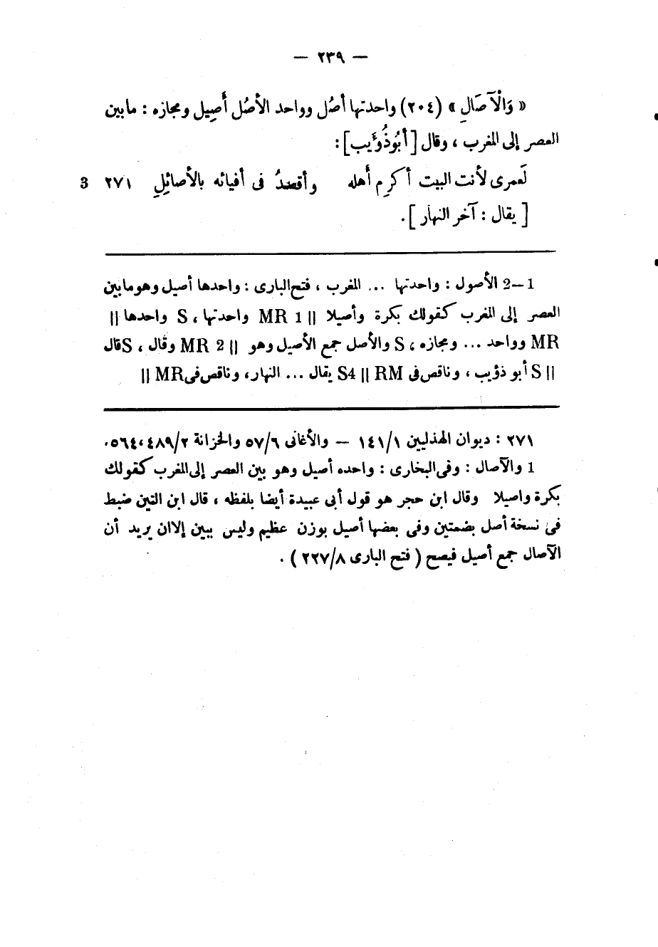 (1) والآصال: وفى البخاري: واحده أصيل وهو بين العصر إلى المغرب كقولك بكرة وأصيلا وقال ابن حجر هو قول أبى عبيدة أيضا بلفظه، قال ابن التين ضبط فى نسخة أصل بضمتين وفى بعضها أصيل بوزن عظيم وليس ببين إلا ان يريد أن الآصال جمع أصيل فيصح (فتح الباري 8/ 227) .
