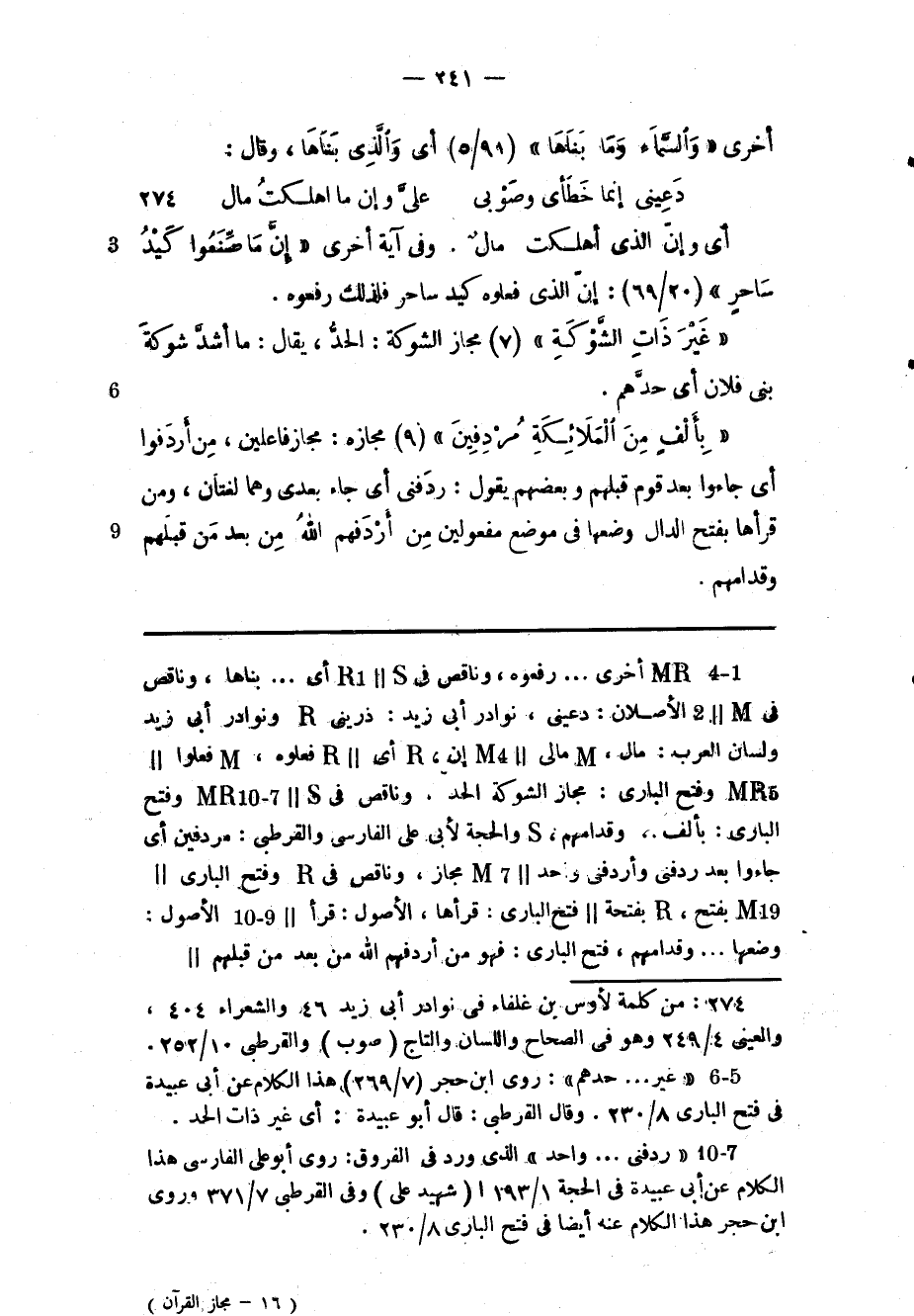 (3) «ردفنى ... واحد» الذي ورد فى الفروق: روى أبو على الفارسي هذا الكلام عن أبى عبيدة فى الحجة 1/ 193 ا (شهيد على) وفى القرطبي 7/ 371 وروى ابن حجر هذا الكلام عنه أيضا فى فتح الباري 8/ 230.