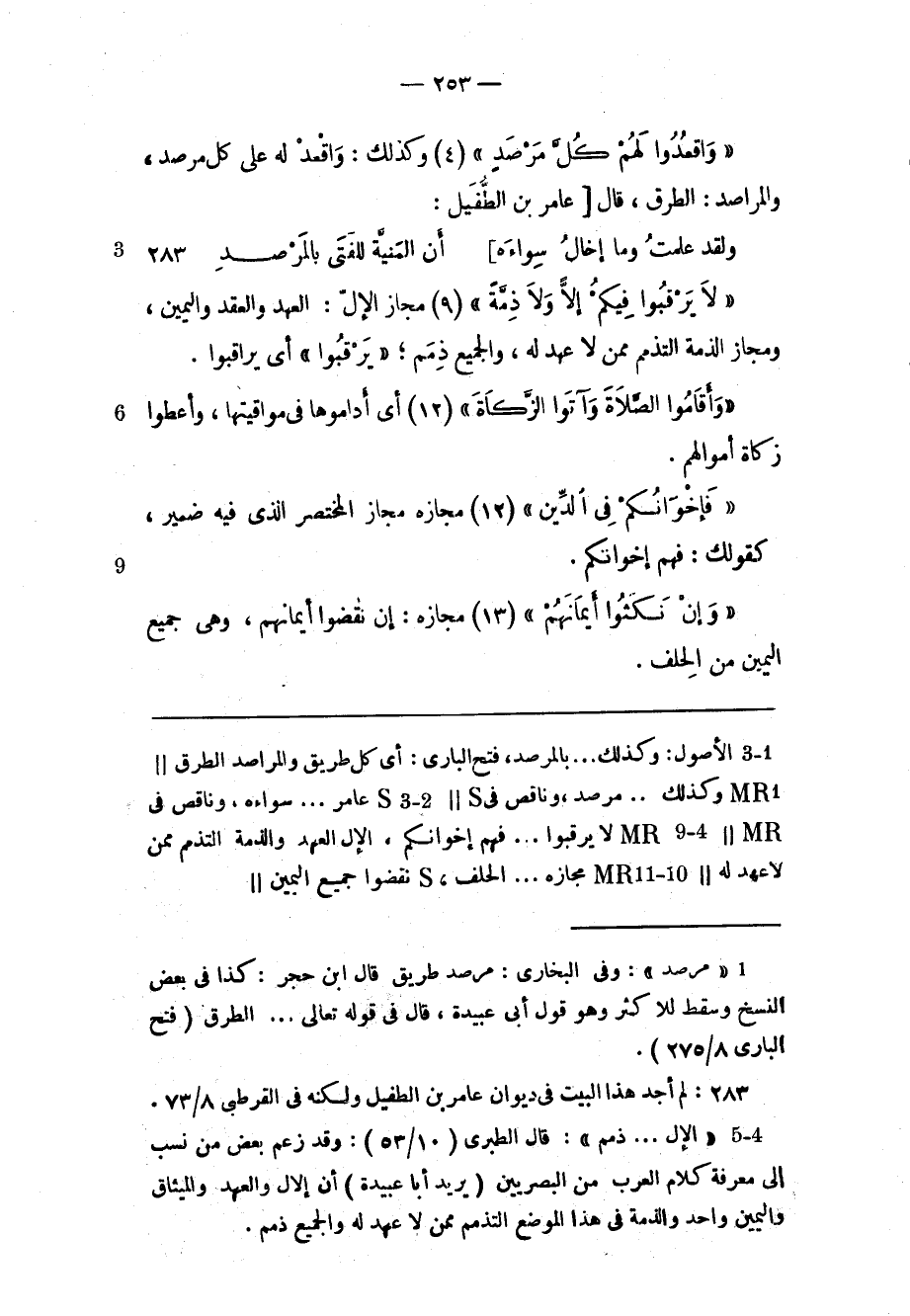 (1) «مرصد» : وفى البخاري: مرصد طريق قال ابن حجر: كذا فى بعض النسخ وسقط للاكثر وهو قول أبى عبيدة، قال فى قوله تعالى ... الطرق (فتح الباري 8/ 275) .