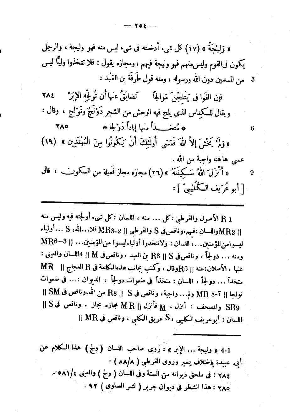 «وَلِيجَةً» (17) كل شىء أدخلته فى شىء ليس منه فهو وليجة، والرجل يكون فى القوم وليس منهم فهو وليجة فيهم، ومجازه يقول: فلا تتخذوا وليّا ليس من المسلمين دون الله ورسوله، ومنه قول طرفة بن العبد: