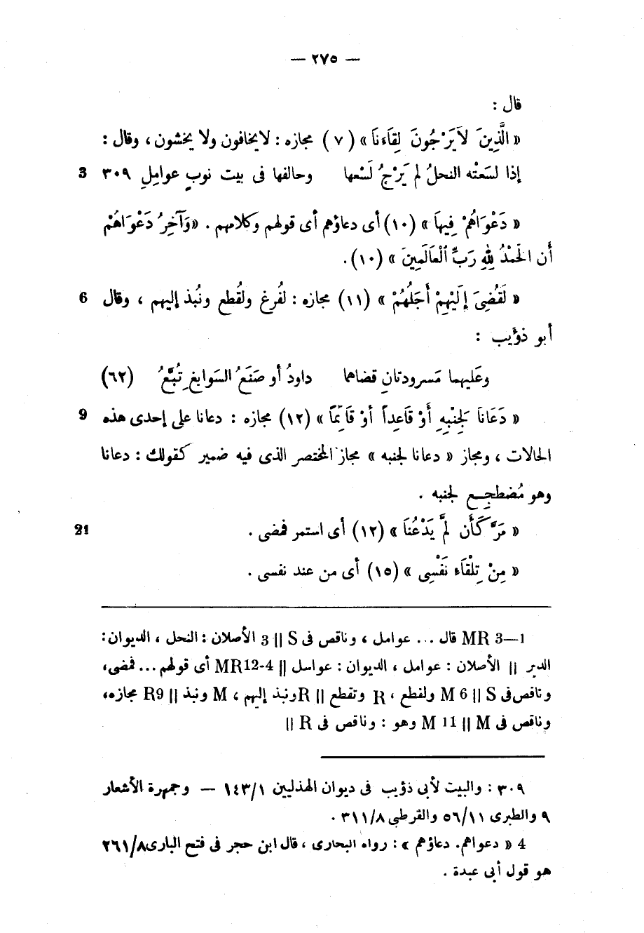 (1) والبيت لأبى ذؤيب فى ديوان الهذليين 1/ 143- وجمهرة الأشعار 9 والطبري 11/ 56 والقرطبي 8/ 311.