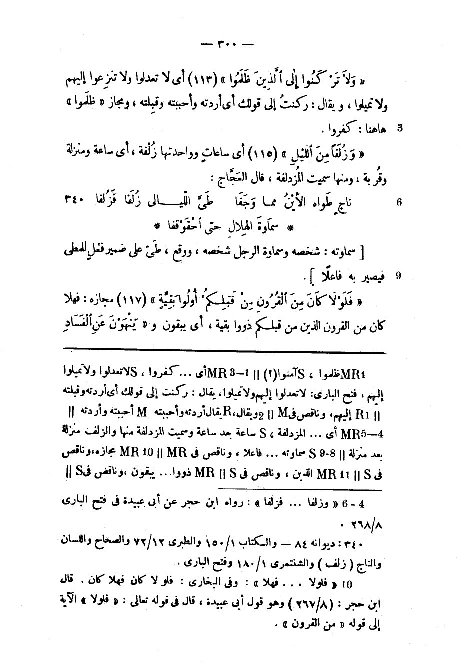 «فَلَوْلا كانَ مِنَ الْقُرُونِ مِنْ قَبْلِكُمْ أُولُوا بَقِيَّةٍ» (117) مجازه: فهلا «3» كان من القرون الذين من قبلكم ذووا بقية، أي يبقون و «يَنْهَوْنَ عَنِ الْفَسادِ