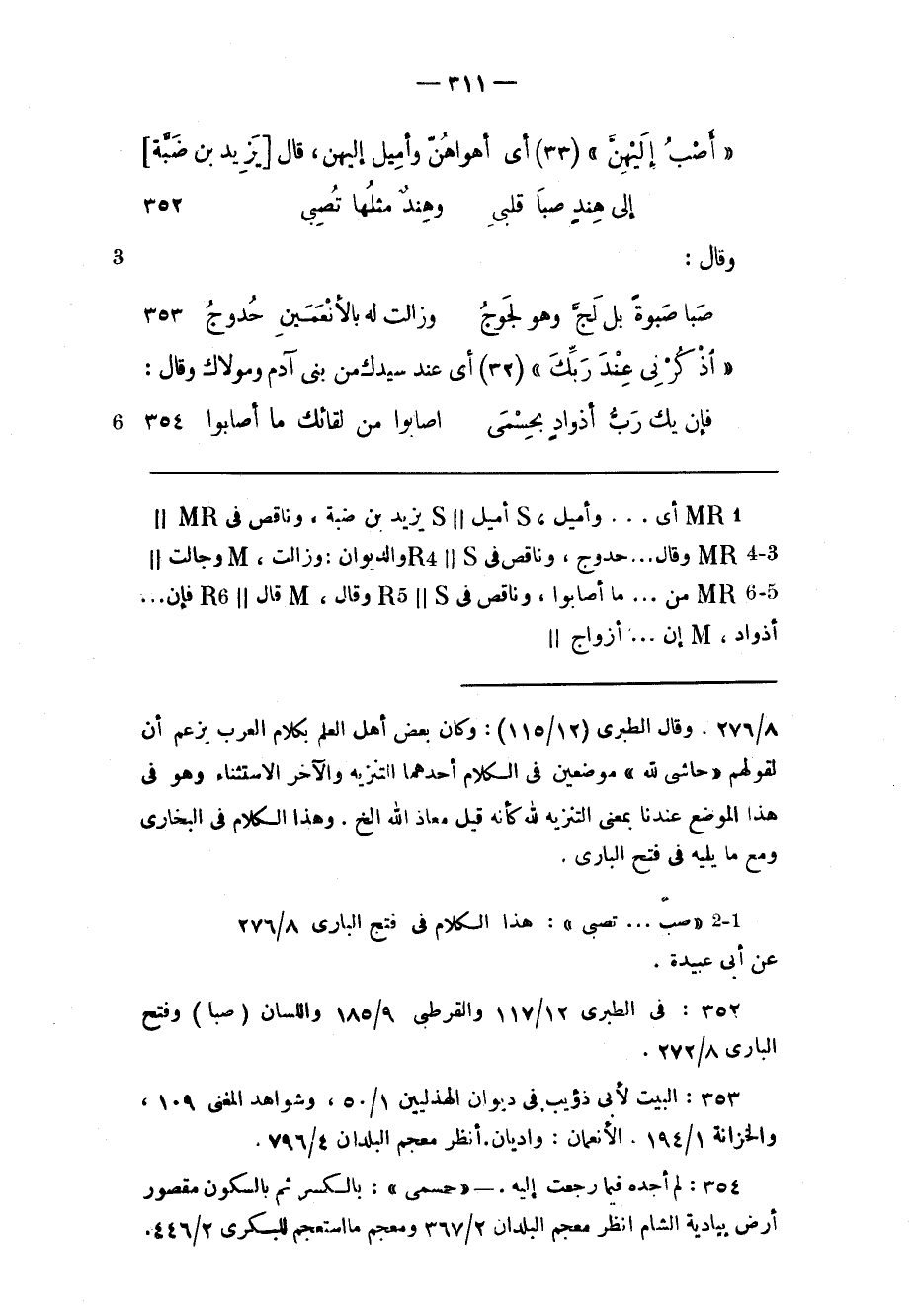 (1) «صبّ ... تصبى» : هذا الكلام فى فتح الباري 8/ 276 عن أبى عبيدة.