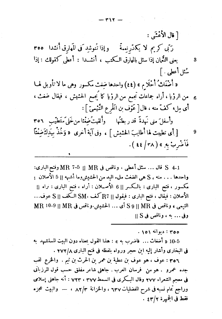 (2) «أضغاث ... فاضرب به» : هذا القول بمعناه دون البيت المستشهد به فى البخاري وأشار إليه ابن حجر ورواه بلفظه فى فتح الباري 8/ 272.