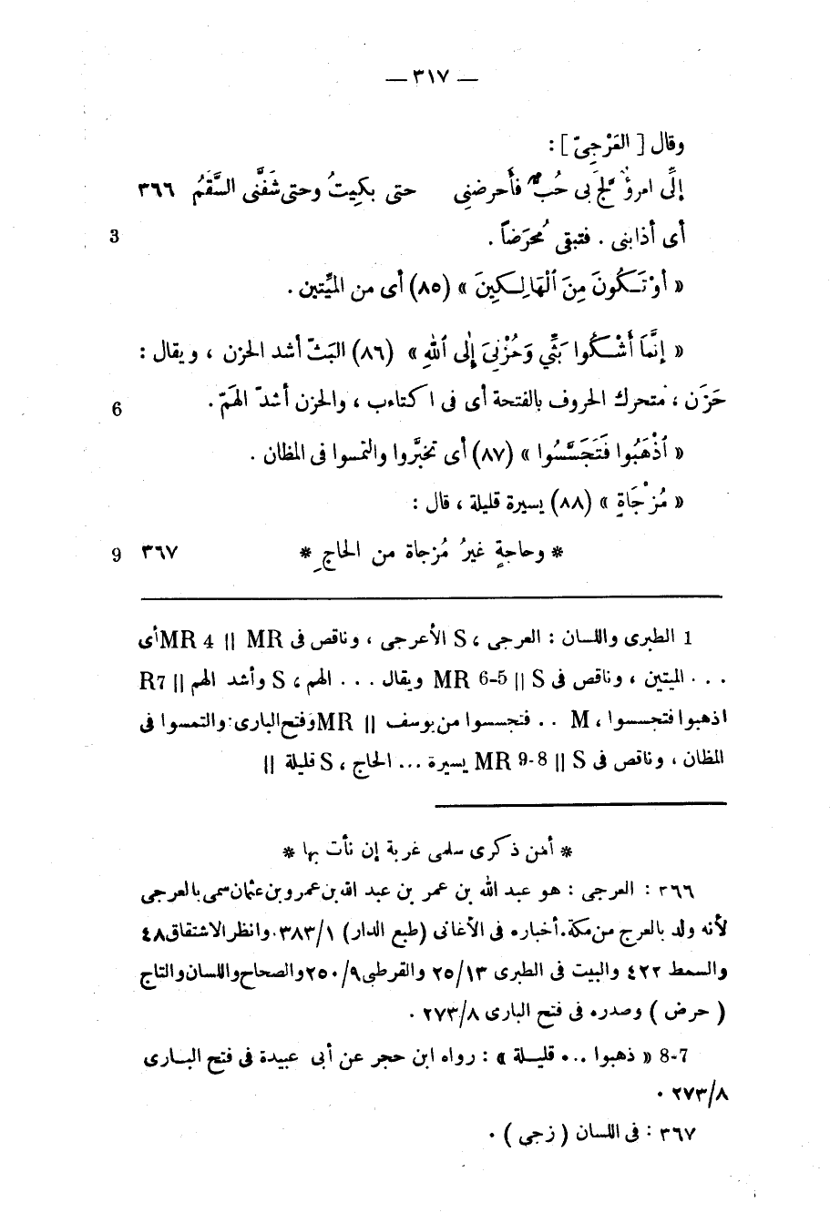(1) : العرجى: هو عبد الله بن عمر بن عبد الله بن عمرو بن عثمان سمى بالعرجي لأنه ولد بالعرج من مكة. أخباره فى الأغانى (طبع الدار) 1/ 383 وانظر الاشتقاق 48 والسمط 422 والبيت فى الطبري 13/ 25 والقرطبي 9/ 250 والصحاح واللسان والتاج (حرض) وصدره فى فتح الباري 8/ 273.
