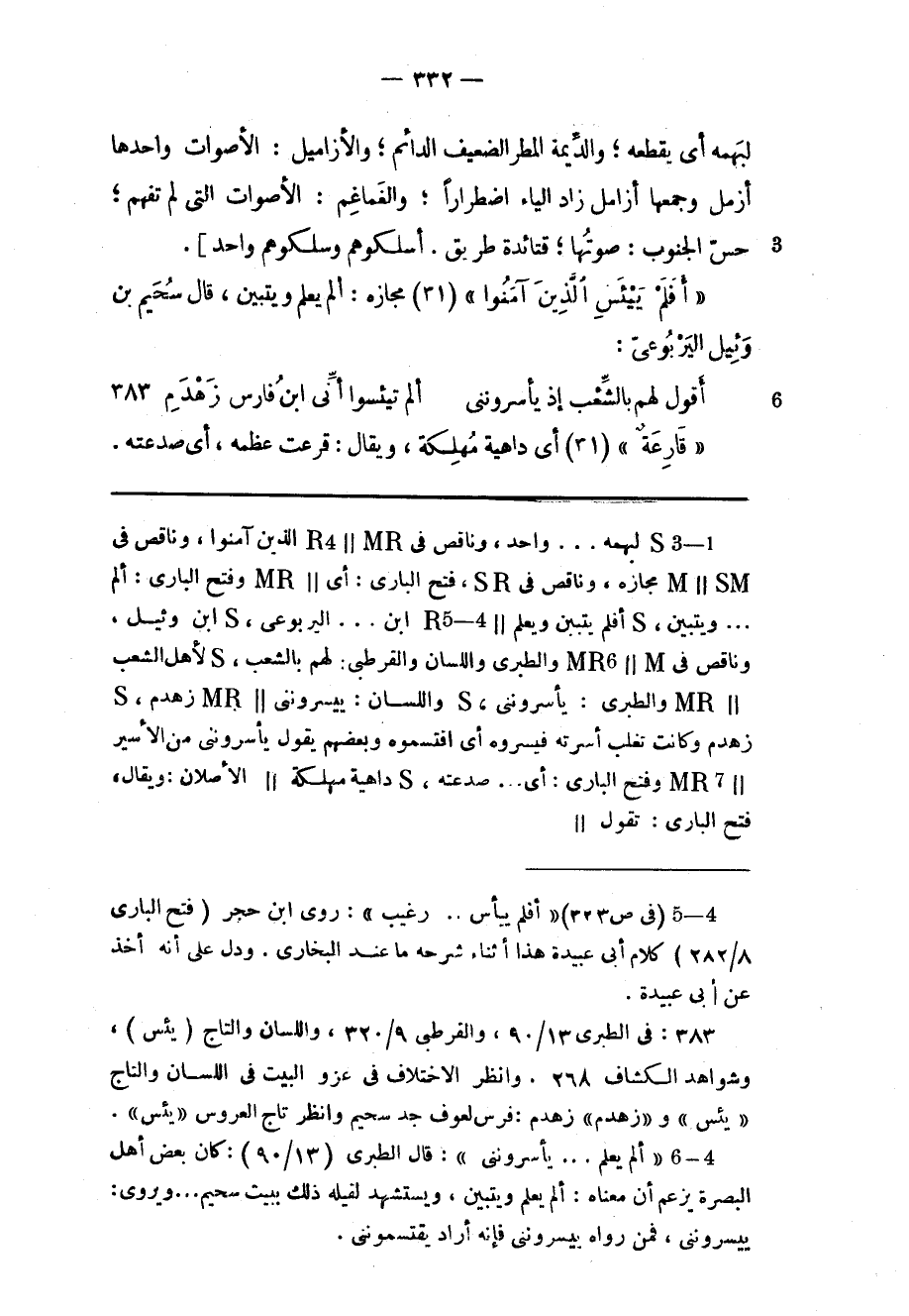 «أَفَلَمْ يَيْأَسِ «1» الَّذِينَ آمَنُوا» (31) مجازه: ألم يعلم ويتبين، قال سحيم بن وئيل اليربوعىّ: