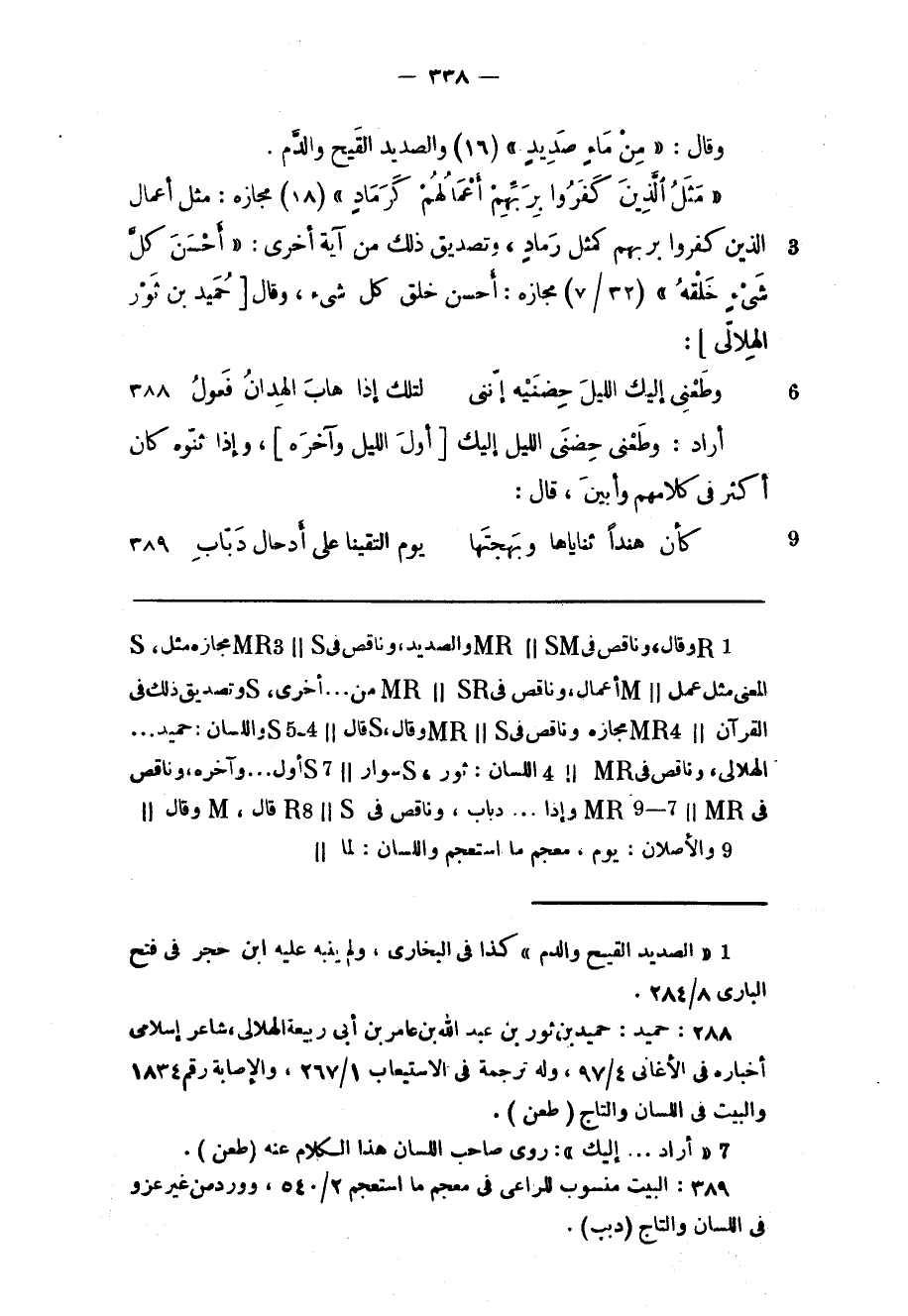 (2) : حميد: حميد بن ثور بن عبد الله بن عامر بن أبى ربيعة الهلالي، شاعر إسلامى أخباره فى الأغانى 4/ 97، وله ترجمة فى الاستيعاب 1/ 267، والإصابة رقم 1834 والبيت فى اللسان والتاج (طعن) .