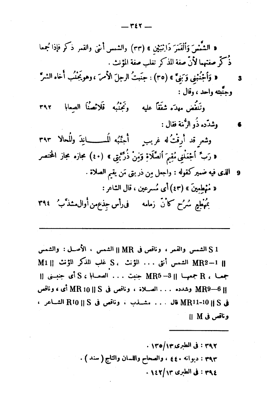 «الشَّمْسَ وَالْقَمَرَ دائِبَيْنِ» (33) والشمس أثنى والقمر ذكر فإذا جمعا ذكّر صفتهما لأنّ صفة المذكر تغلب صفة المؤنث.