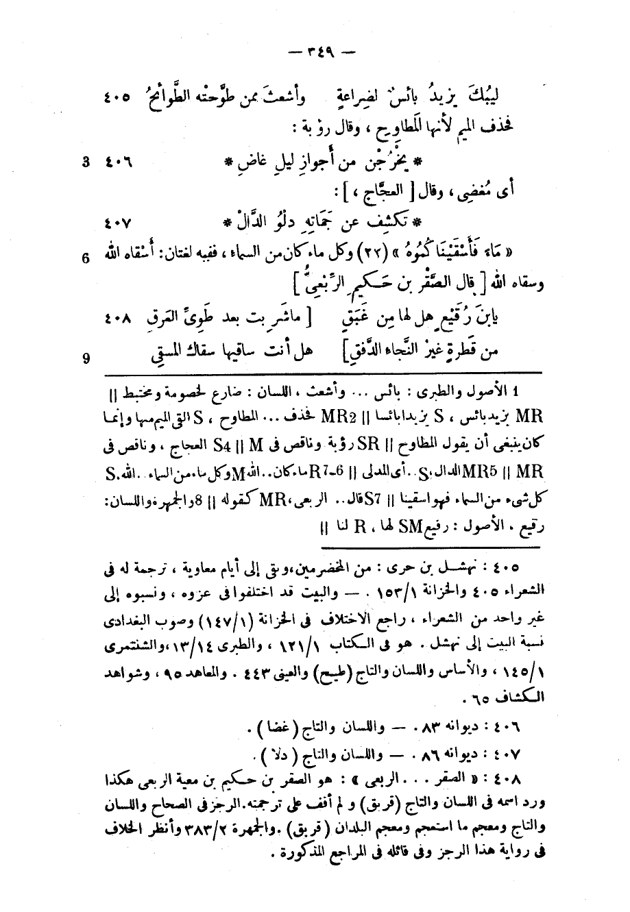 (1) : نهشل بن حرى: من المخضرمين، وبقي إلى أيام معاوية، ترجمة له فى الشعراء 405 والخزانة 1/ 153. - والبيت قد اختلفوا فى عزوه، ونسبوه إلى غير واحد من الشعراء، راجع الاختلاف فى الخزانة (1/ 147) وصوب البغدادي نسبة البيت إلى نهشل. هو فى الكتاب 1/ 121، والطبري 14/ 13، والشنتمرى 1/ 145، والأساس واللسان والتاج (طيح) والعيني 443. والمعاهد 95، وشواهد الكشاف 65.