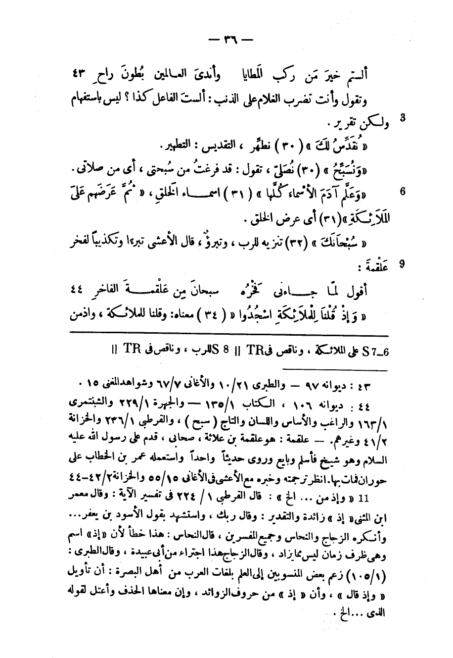 (2) : ديوانه 106، الكتاب 1/ 135- والجهرة 1/ 229 والشبنتمرى 1/ 163 والراغب والأساس واللسان والتاج (سبح) ، والقرطبي 1/ 236 والخزانة 2/ 41 وغيرهم. - علقمة: هو علقمة بن علاثة، صحابى، قدم على رسول الله عليه السلام وهو شيخ فأسلم وبايع وروى حديثا واحدا واستعمله عمر بن الخطاب على حوران فمات بها. انظر ترجمته وخبره مع الأعشى فى الأغانى 15/ 55 والخزانة 2/ 42- 44