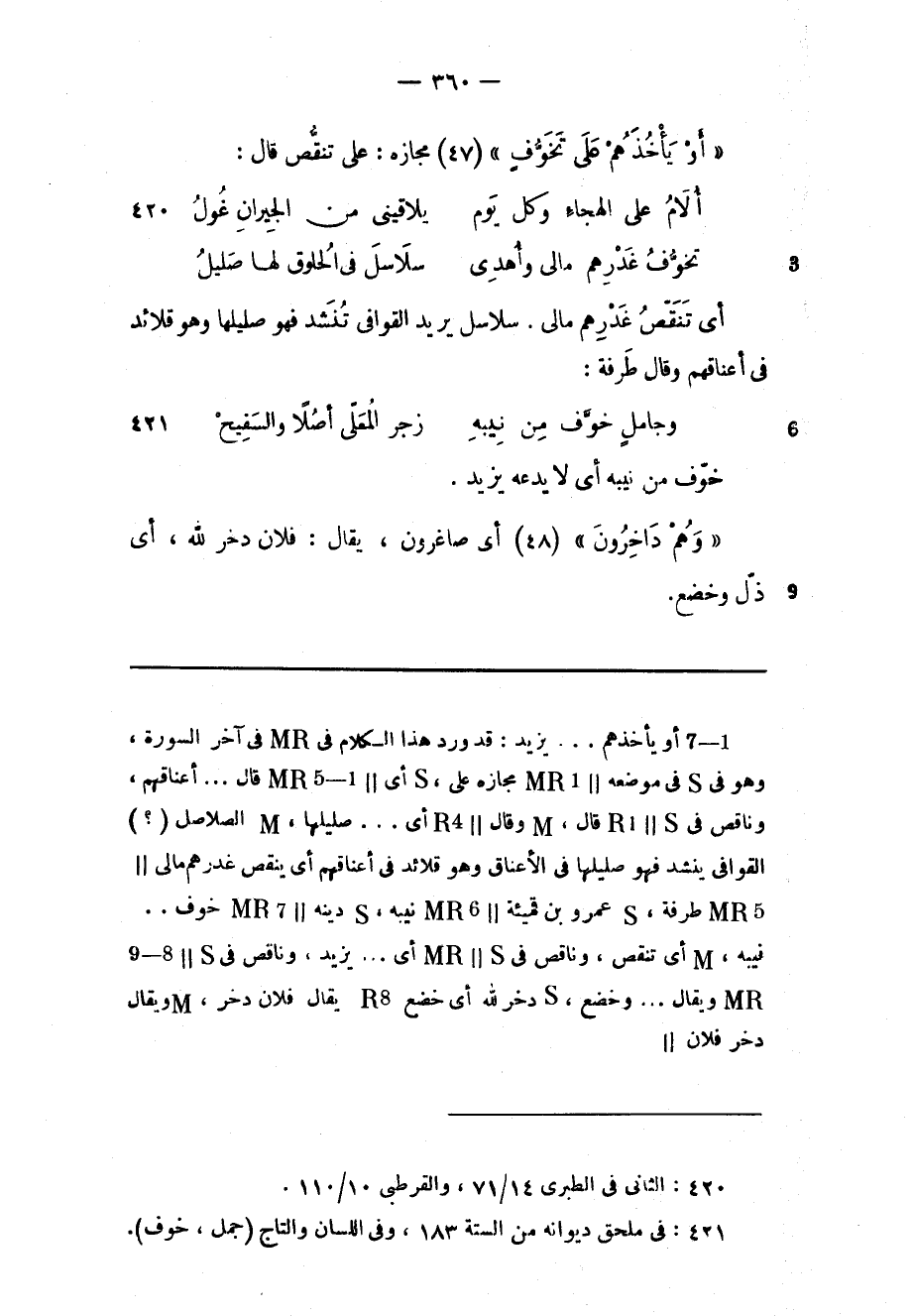«أَوْ يَأْخُذَهُمْ عَلى تَخَوُّفٍ» (47) مجازه: على تنقّص قال: