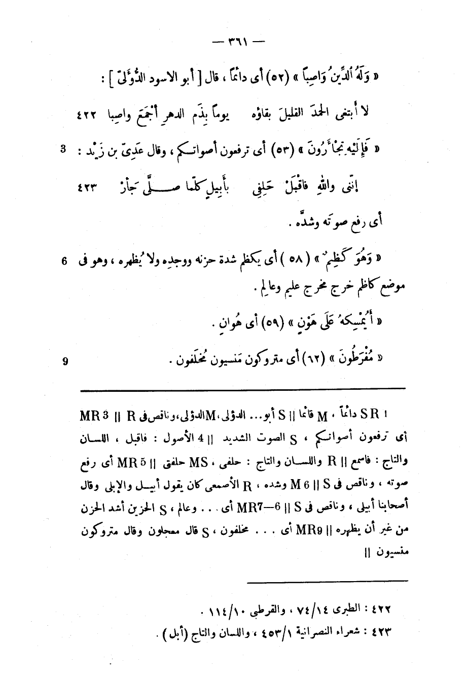 «وَلَهُ الدِّينُ واصِباً» (52) أي دائما، قال [أبو الأسود الدّؤلىّ] :
