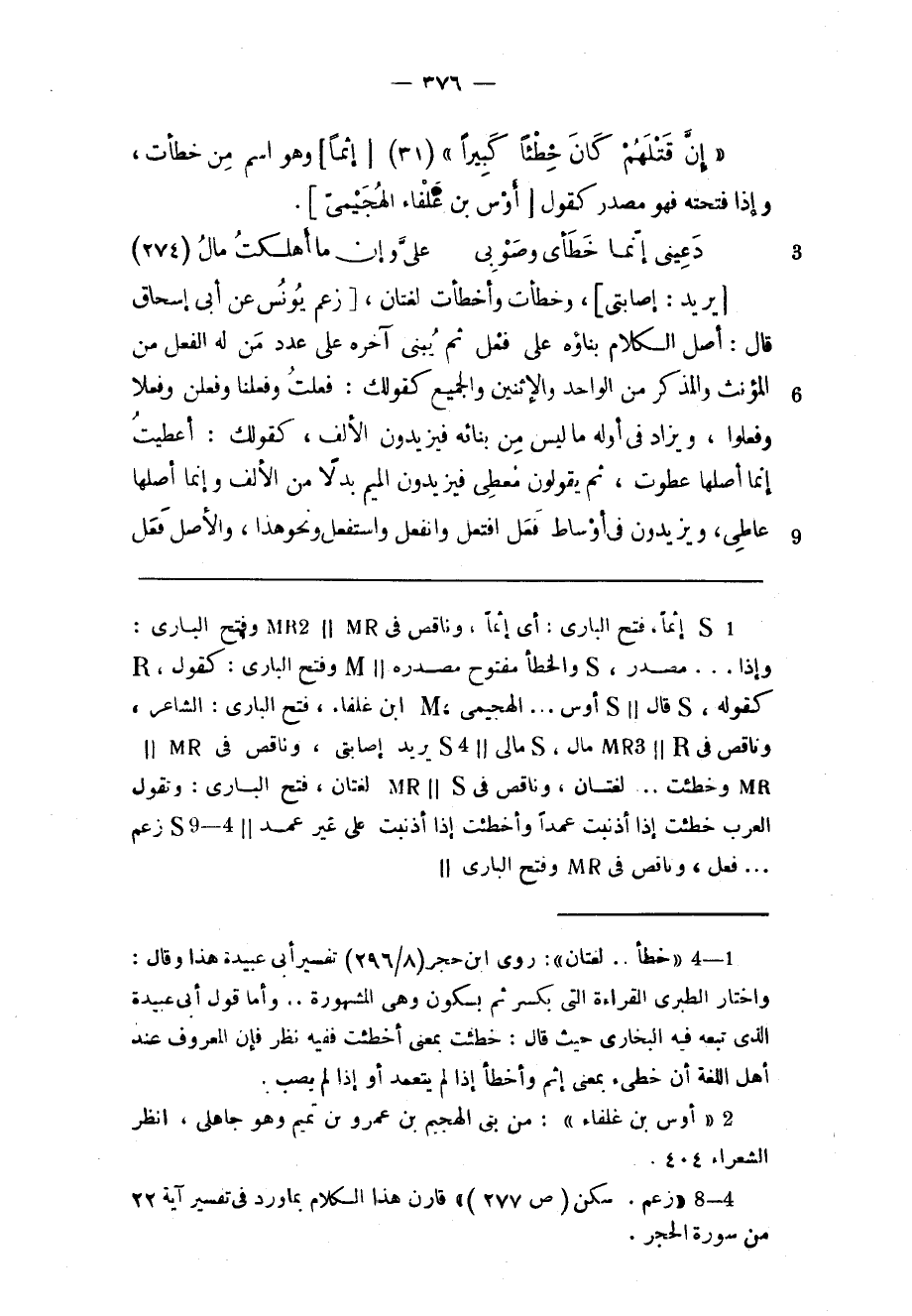 (3) «زعم ... سكن (ص 277) » قارن هذا الكلام بما ورد فى تفسير آية 22 من سورة الحجر.