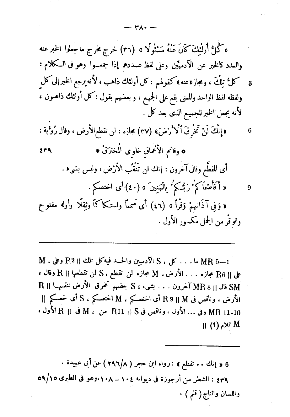 «كُلُّ أُولئِكَ كانَ عَنْهُ مَسْؤُلًا» (36) خرج مخرج ما جعلوا الخبر عنه والعدد كالخبر عن الآدميّين وعلى لفظ عددهم إذا جمعوا وهو فى الكلام: