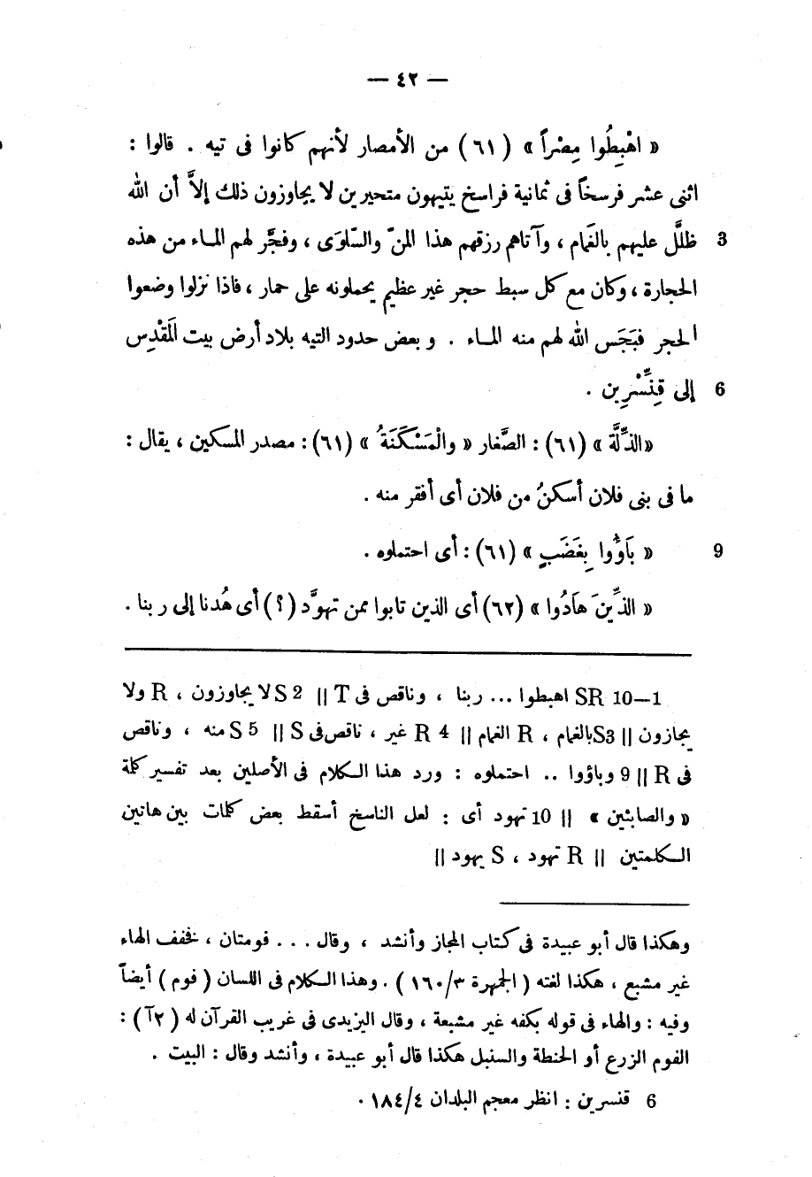 «اهْبِطُوا مِصْراً» (61) من الأمصار لأنهم كانوا فى تيه. قالوا: