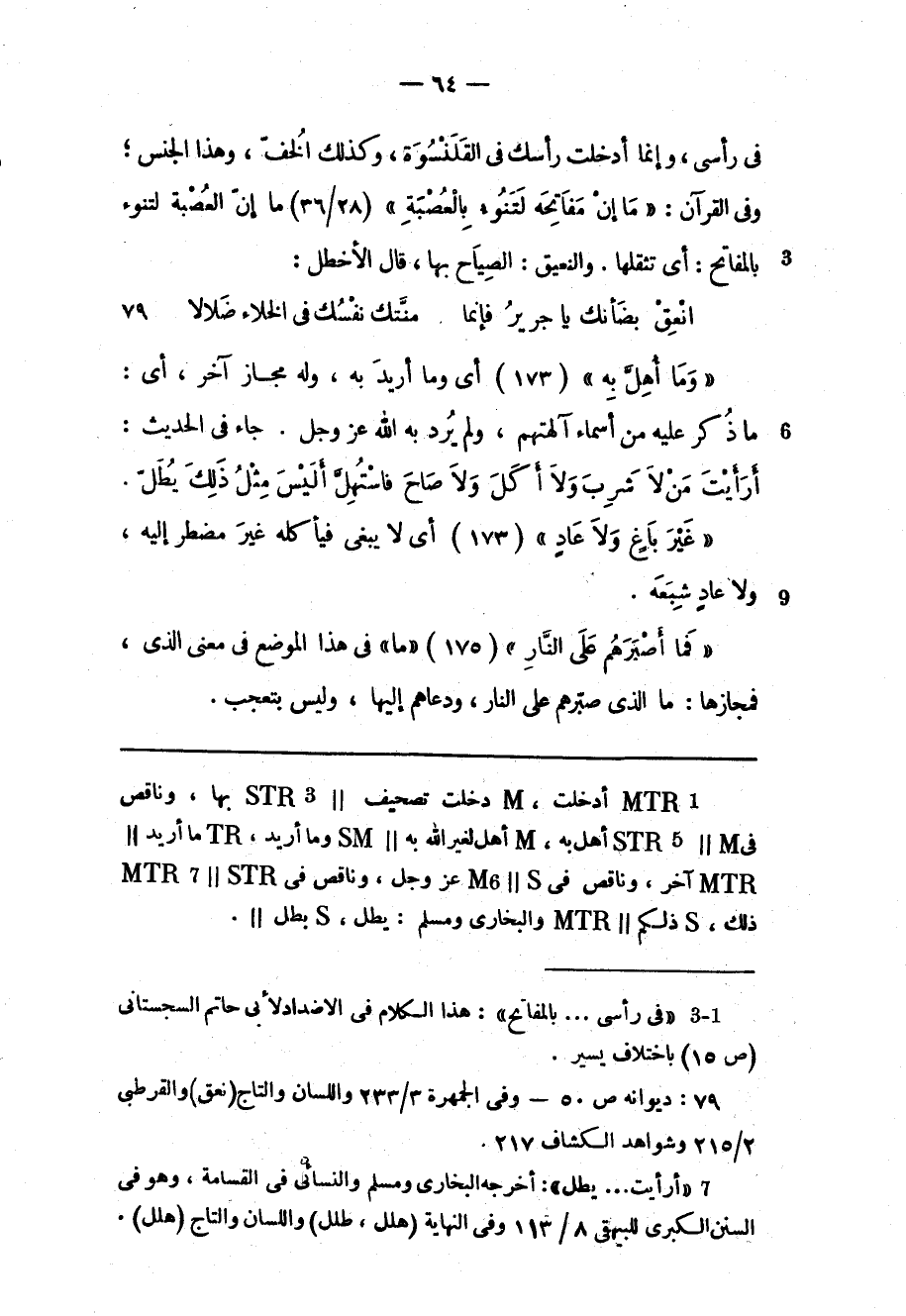 (1) «فى رأسى ... بالمفاتح» : هذا الكلام فى الاضداد لأبى حاتم السجستاني (ص 15) باختلاف يسير.