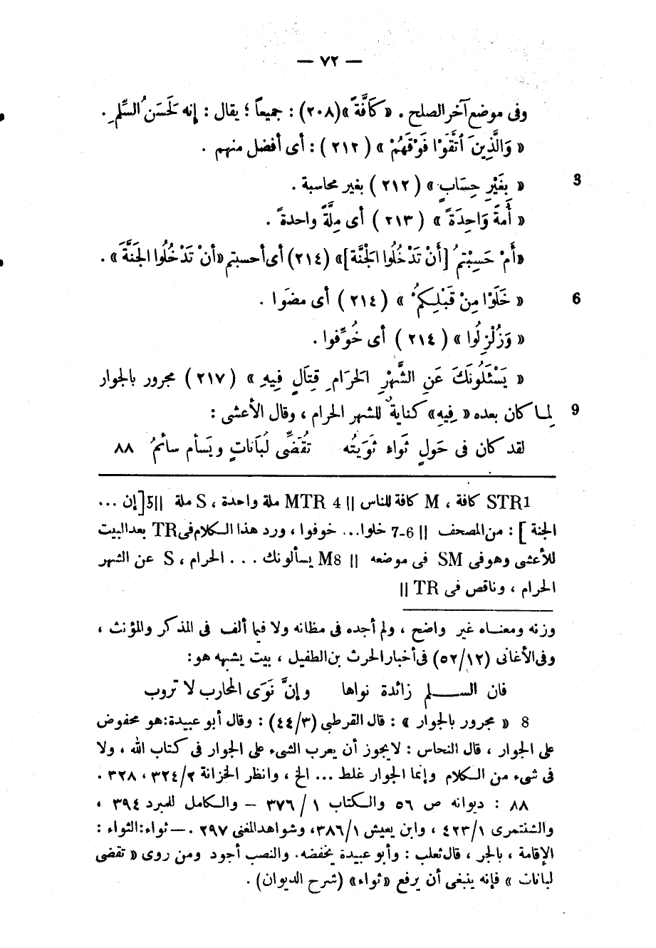 «يَسْئَلُونَكَ عَنِ الشَّهْرِ الْحَرامِ قِتالٍ فِيهِ» (217) مجرور بالجوار «1» لما كان بعده «فِيهِ» كناية للشهر الحرام، وقال الأعشى:
