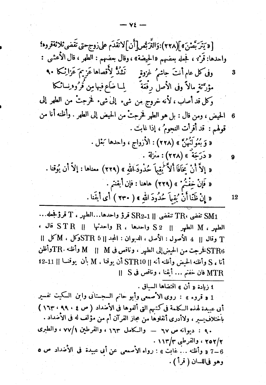 (2) «قُرُوءٍ» : روى الأصمعى وأبو حاتم السجستاني وابن السكيت تفسير أبى عبيدة لهذه الكلمة فى كتبهم التي ألفوها فى الأضداد (ص 4، 99، 163) باختلاف يسير، ولا أدرى أنقلوها من مجاز القرآن أم من مؤلف له فى الأضداد. [.....]