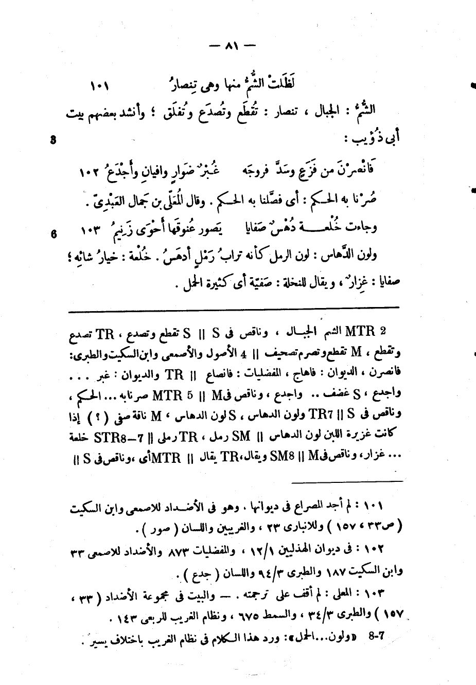 (1) : لم أجد المصراع فى ديوانها، وهو فى الأضداد للاصمعى وابن السكيت (ص 33، 157) وللانبارى 23، والغريبين واللسان (صور) .