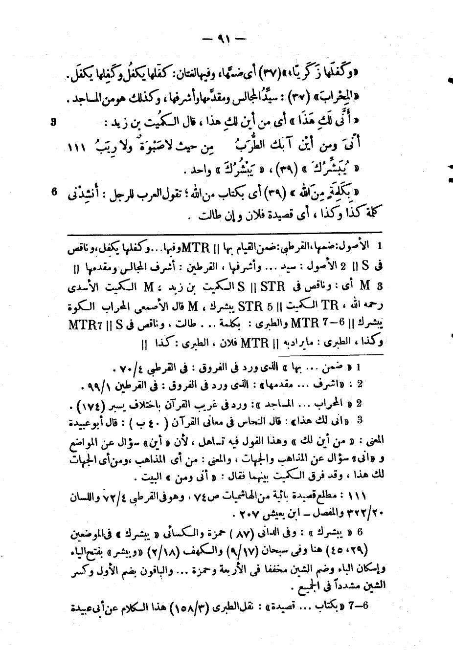(7) «بكتاب ... قصيدة» : نقل الطبري (3/ 158) هذا الكلام عن أبى عبيدة وعقب عليه بقوله: وقد زعم بعض أهل العلم بلغات العرب من أهل البصرة أن معنى ... ، جهلا منه واجتراء على ترجمة القرآن برأيه.