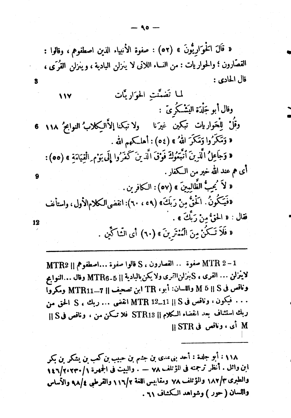 (1) : أبو جلدة: أحد بنى عندى بن جشم بن حبيب بن كعب بن يشكر بن بكر ابن وائل. أنظر ترجمته فى المؤتلف 78-. والبيت فى الجمهرة 1/ 230، 2/ 146 والطبري 3/ 182 والمؤتلف 78 ومقاييس اللغة 2/ 116 والقرطبي 4/ 98 والأساس واللسان (حور) وشواهد الكشاف 61.