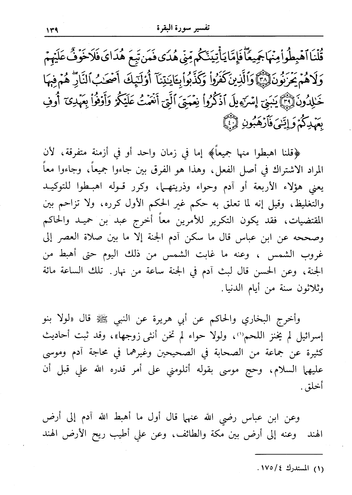 قُلْنَا اهْبِطُوا مِنْهَا جَمِيعًا فَإِمَّا يَأْتِيَنَّكُمْ مِنِّي هُدًى فَمَنْ تَبِعَ هُدَايَ فَلَا خَوْفٌ عَلَيْهِمْ وَلَا هُمْ يَحْزَنُونَ (38) وَالَّذِينَ كَفَرُوا وَكَذَّبُوا بِآَيَاتِنَا أُولَئِكَ أَصْحَابُ النَّارِ هُمْ فِيهَا خَالِدُونَ (39) يَا بَنِي إِسْرَائِيلَ اذْكُرُوا نِعْمَتِيَ الَّتِي أَنْعَمْتُ عَلَيْكُمْ وَأَوْفُوا بِعَهْدِي أُوفِ بِعَهْدِكُمْ وَإِيَّايَ فَارْهَبُونِ (40)