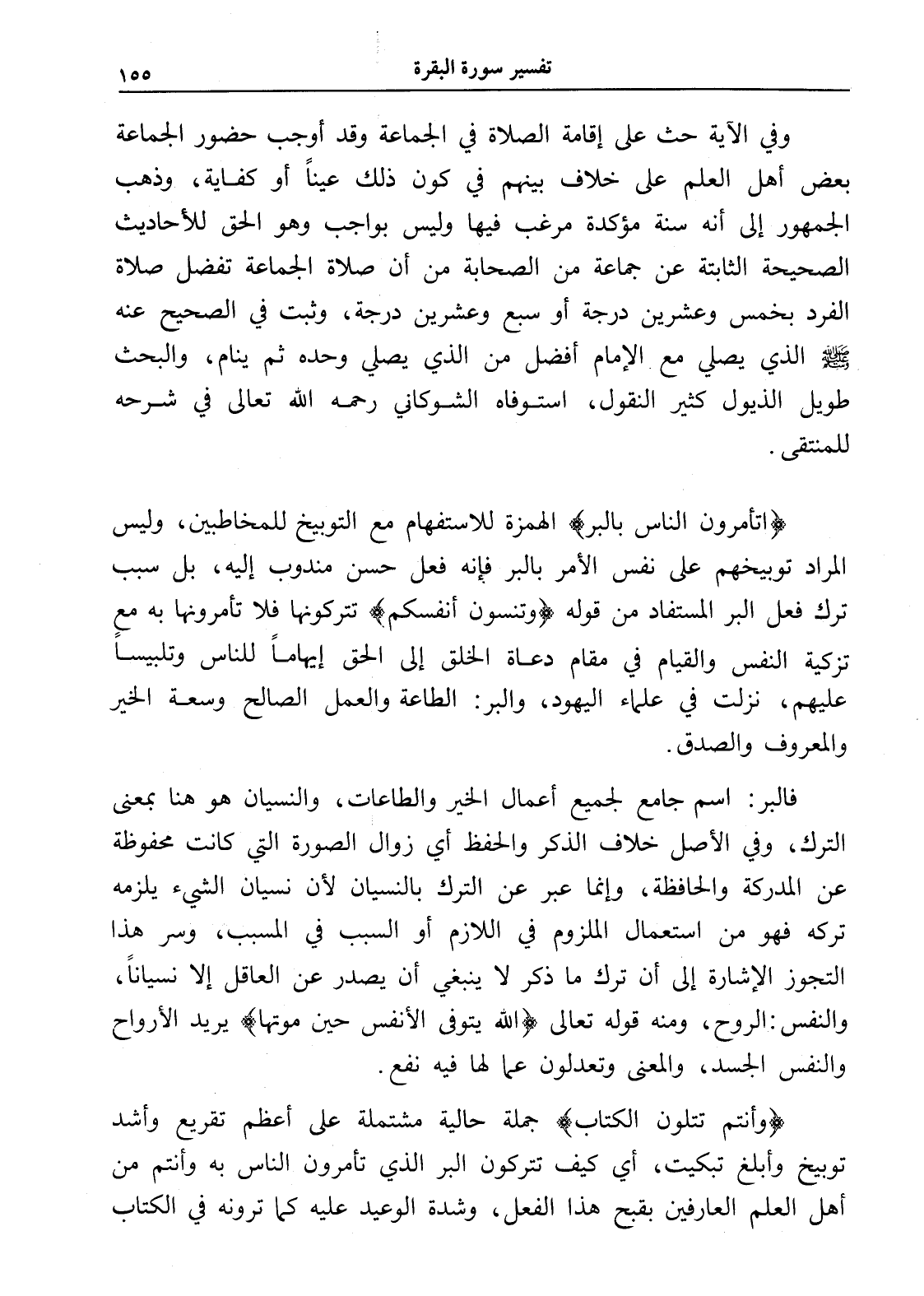 (اتأمرون الناس بالبر) الهمزة للاستفهام مع التوبيخ للمخاطبين، وليس المراد توبيخهم على نفس الأمر بالبر فإنه فعل حسن مندوب إليه، بل سبب ترك فعل البر المستفاد من قوله (وتنسون أنفسكم) تتركونها فلا تأمرونها به مع تزكية النفس والقيام في مقام دعاة الخلق إلى الحق إيهاماً للناس وتلبيساً عليهم، نزلت في علماء اليهود، والبر: الطاعة والعمل الصالح وسعة الخير والمعروف والصدق.