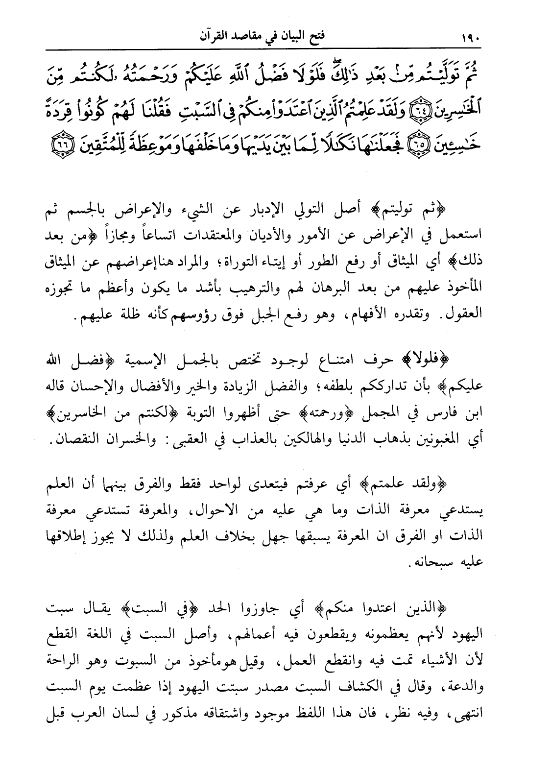 ثُمَّ تَوَلَّيْتُمْ مِنْ بَعْدِ ذَلِكَ فَلَوْلَا فَضْلُ اللَّهِ عَلَيْكُمْ وَرَحْمَتُهُ لَكُنْتُمْ مِنَ الْخَاسِرِينَ (64) وَلَقَدْ عَلِمْتُمُ الَّذِينَ اعْتَدَوْا مِنْكُمْ فِي السَّبْتِ فَقُلْنَا لَهُمْ كُونُوا قِرَدَةً خَاسِئِينَ (65) فَجَعَلْنَاهَا نَكَالاً لِمَا بَيْنَ يَدَيْهَا وَمَا خَلْفَهَا وَمَوْعِظَةً لِلْمُتَّقِينَ (66)