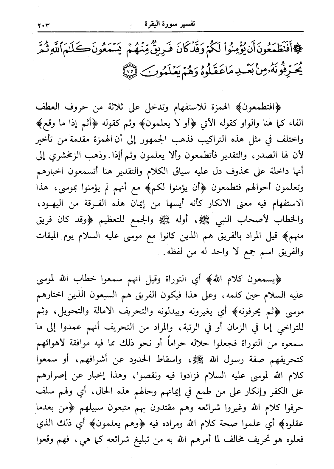 أَفَتَطْمَعُونَ أَنْ يُؤْمِنُوا لَكُمْ وَقَدْ كَانَ فَرِيقٌ مِنْهُمْ يَسْمَعُونَ كَلَامَ اللَّهِ ثُمَّ يُحَرِّفُونَهُ مِنْ بَعْدِ مَا عَقَلُوهُ وَهُمْ يَعْلَمُونَ (75)