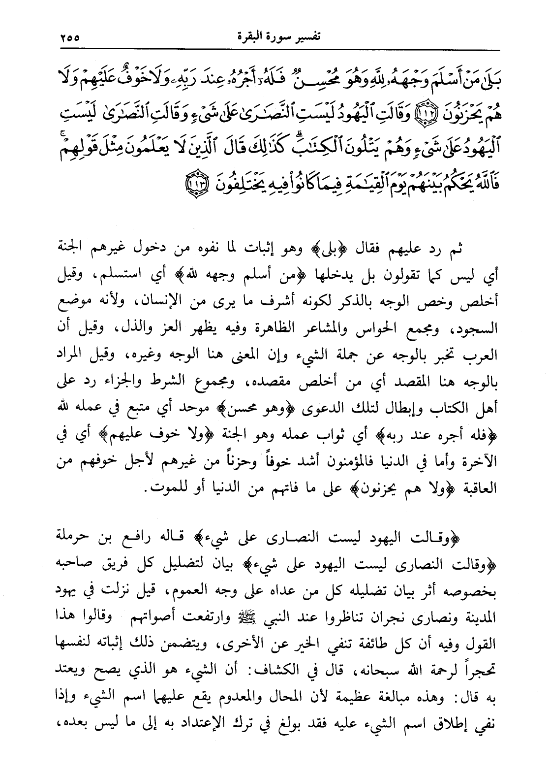 بَلَى مَنْ أَسْلَمَ وَجْهَهُ لِلَّهِ وَهُوَ مُحْسِنٌ فَلَهُ أَجْرُهُ عِنْدَ رَبِّهِ وَلَا خَوْفٌ عَلَيْهِمْ وَلَا هُمْ يَحْزَنُونَ (112)